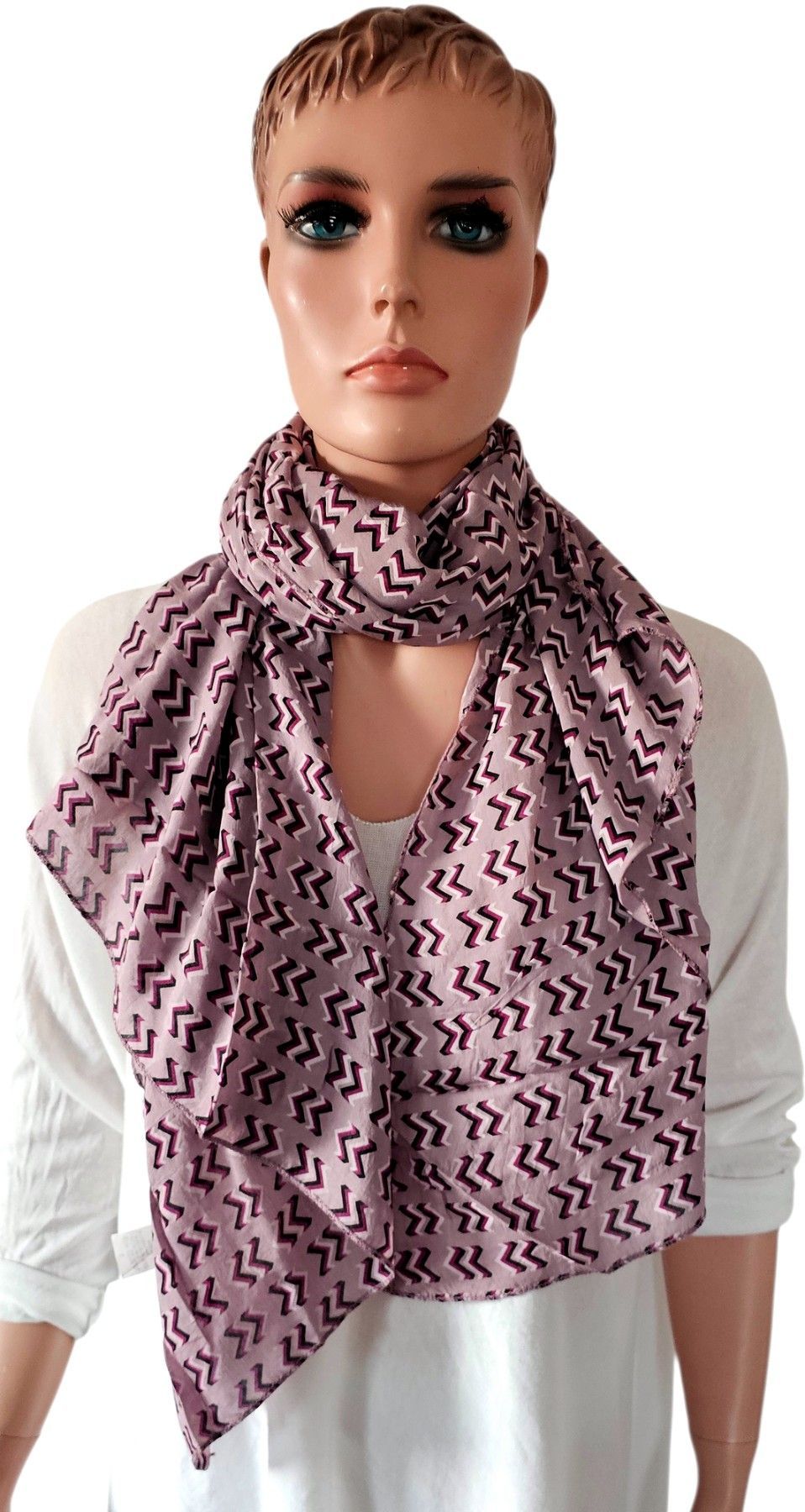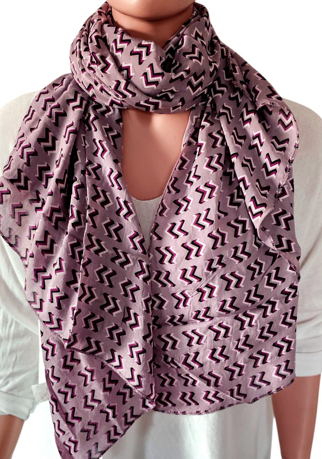 Italy Blogger Schal Halstuch Stola asymetrisch Seide Baumwolle Zickzack Altrosa