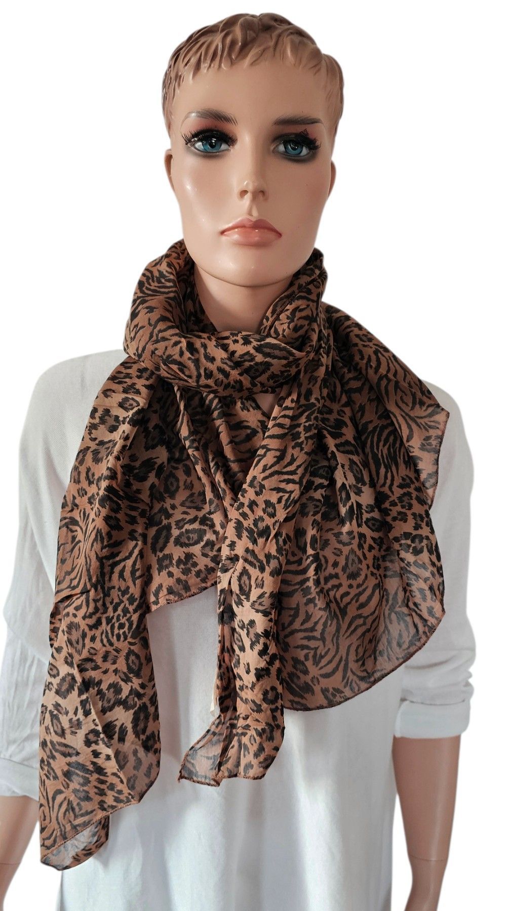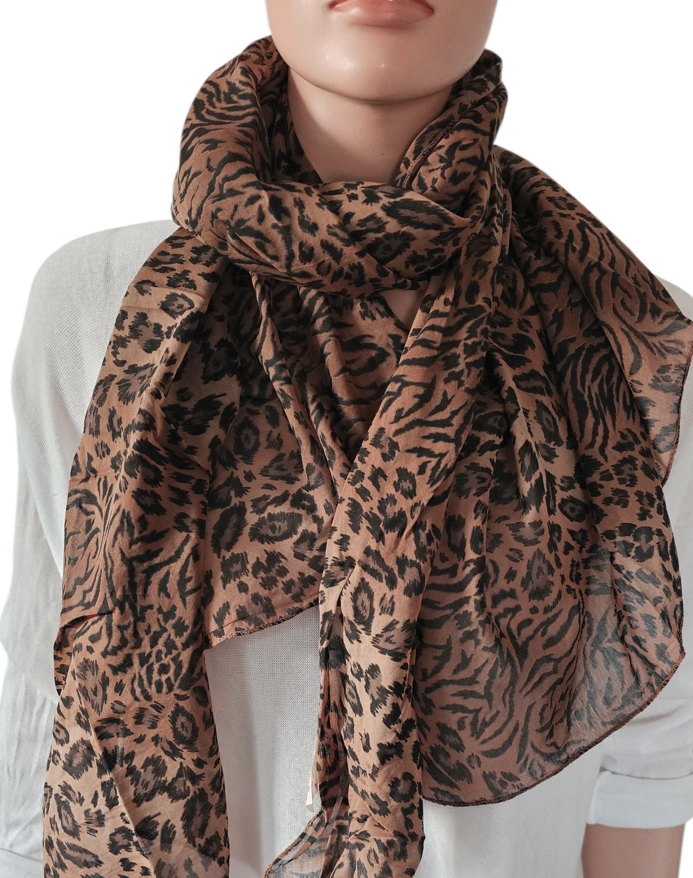 Italy Blogger Schal Tuch Halstuch Animal Seide/Baumwolle Leoprint Braun/Schwarz