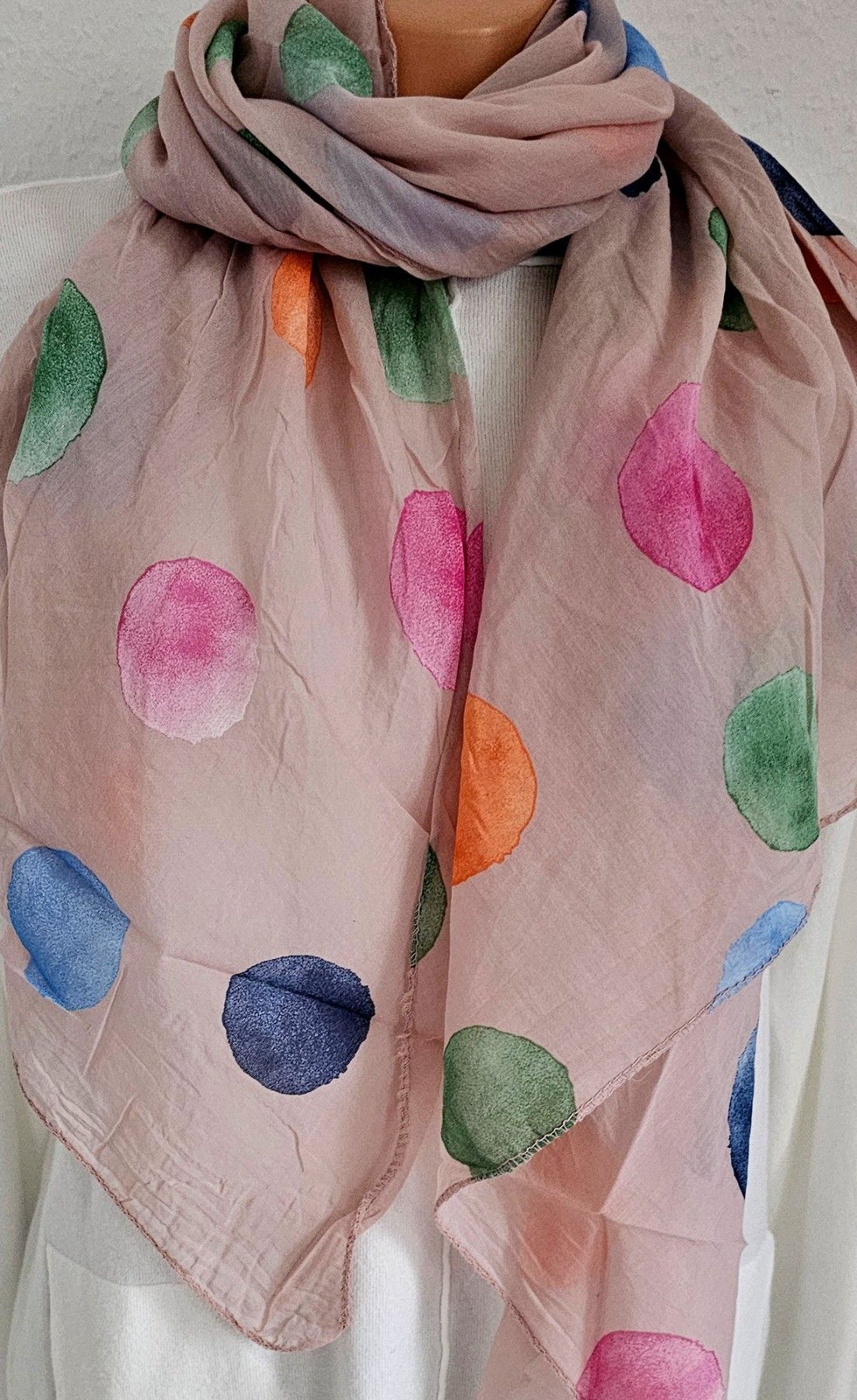 Italy Blogger Schal Tuch Halstuch Scarf Seide/Baumwolle bunte Punkte Altrosa