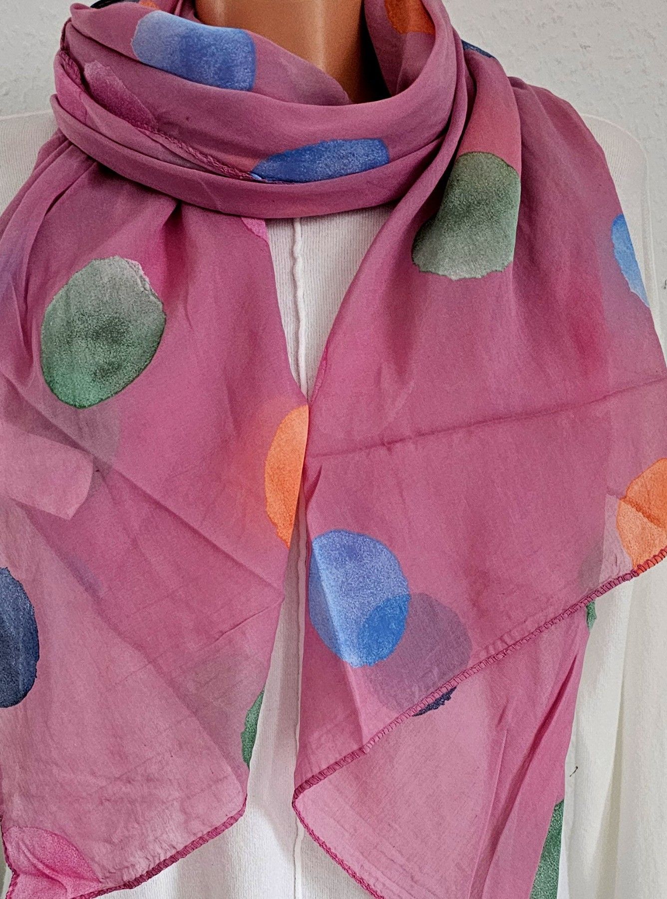 Italy Blogger Schal Tuch Halstuch Scarf Seide/Baumwolle bunte Punkte dunkles Rosa