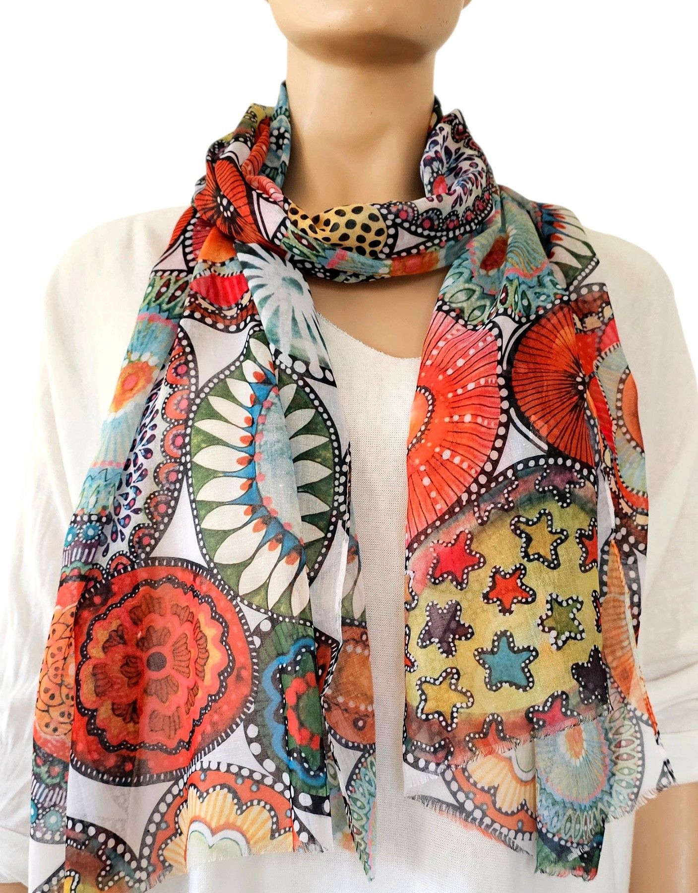 Italy Blogger Schal Tuch Halstuch Scarf Seide/Baumwolle bunter Print Mehrfarbig