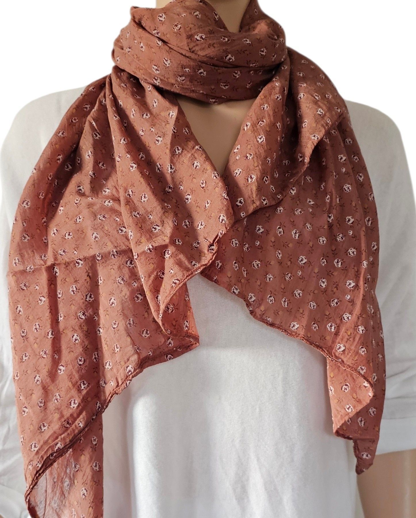 Italy Blogger Schal Tuch Halstuch Scarf Seide/Baumwolle kleiner Blumenprint Braun