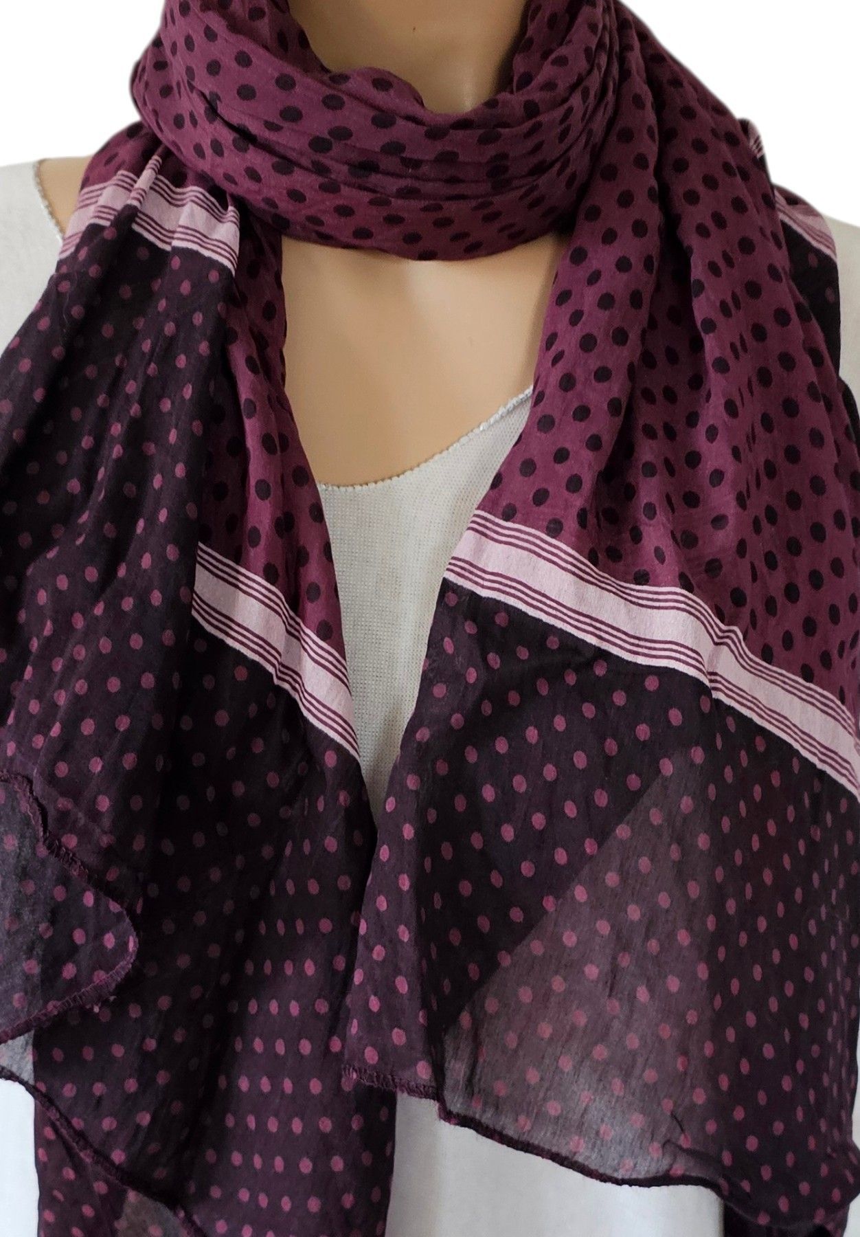 Italy Blogger Schal Tuch Halstuch Scarf Seide/Baumwolle Punkte Streifen Brombeere