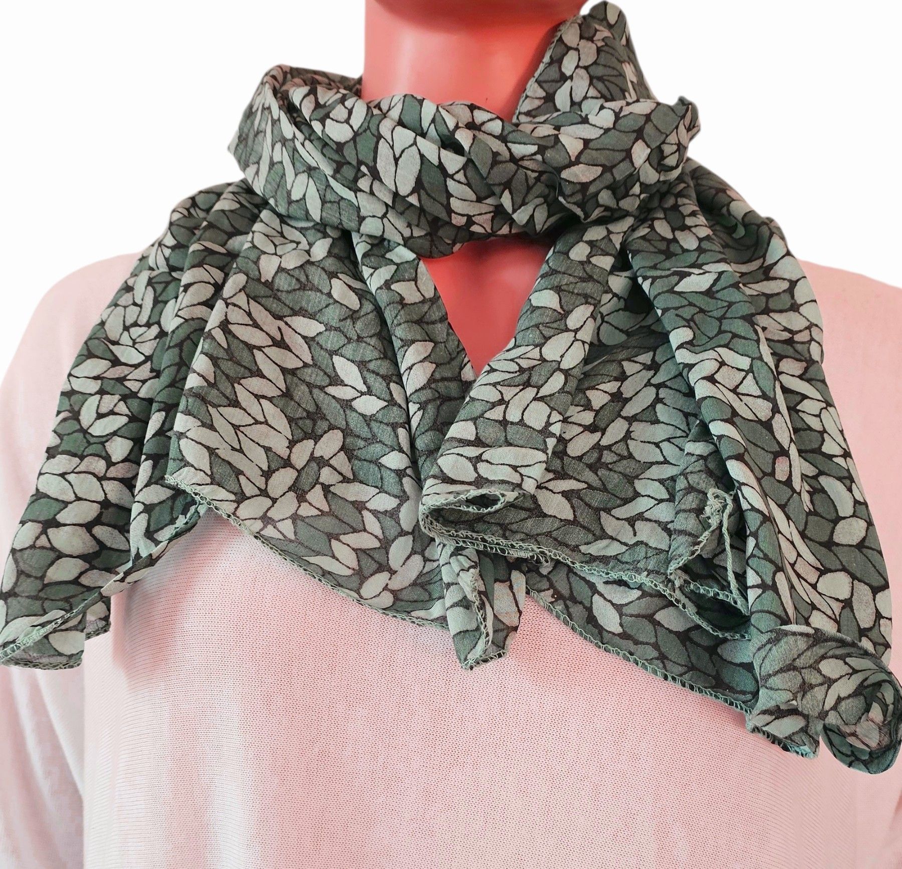Italy Blogger Schal Tuch Halstuch Scarf Seide/Baumwolle toller Print Grüntöne