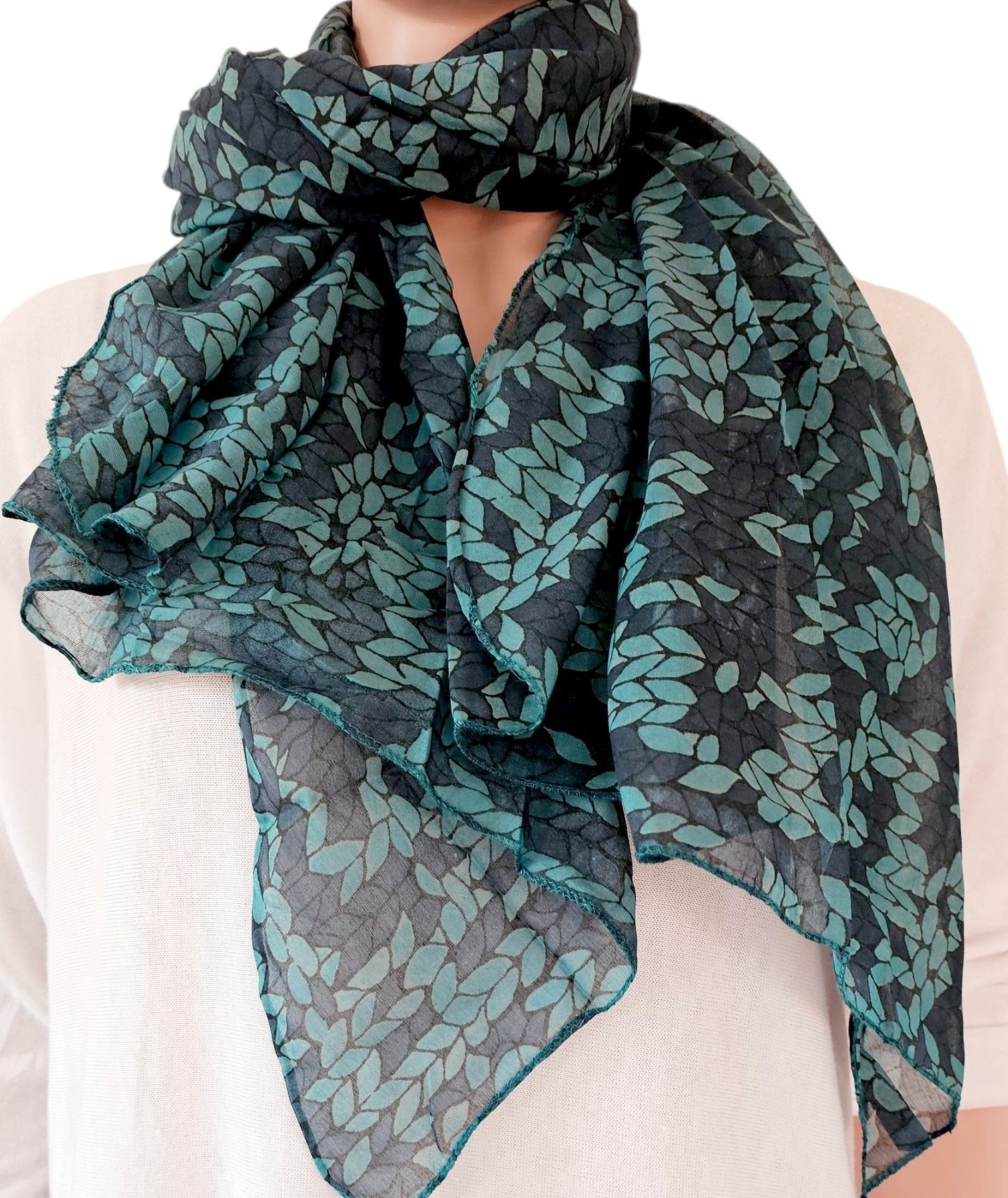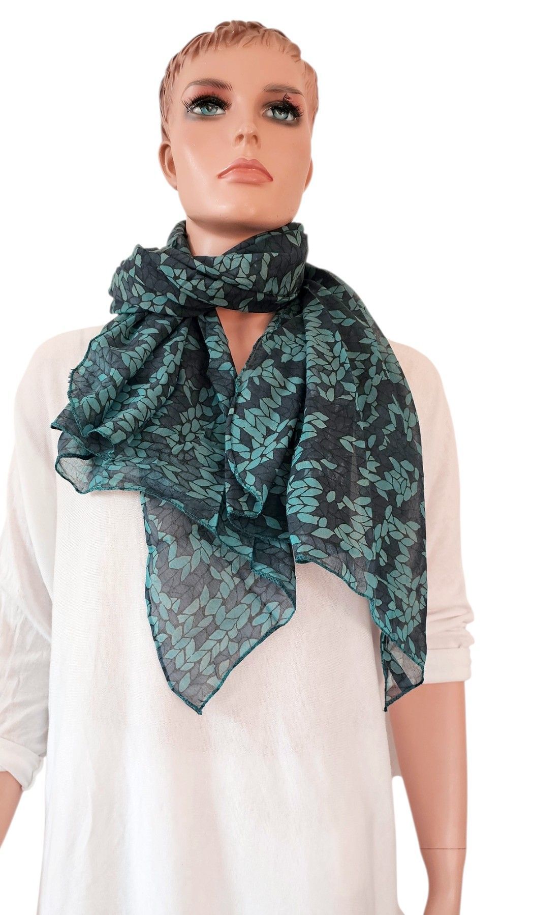 Italy Blogger Schal Tuch Halstuch Scarf Seide/Baumwolle toller Print Petrol/Blau