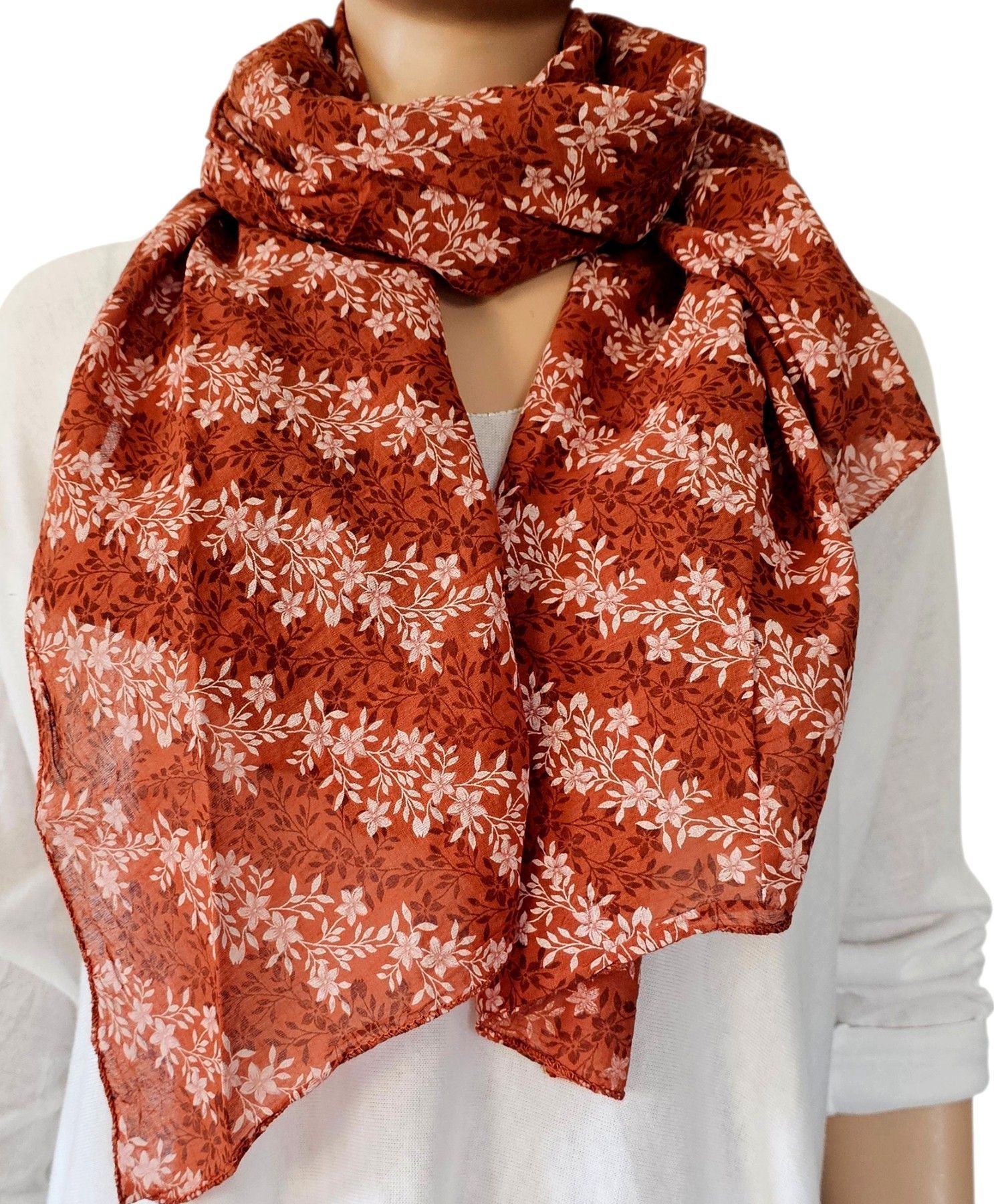 Italy Blogger Schal Tuch Halstuch Seide/Baumw. asymetrisch Blumenprint Terrakotta