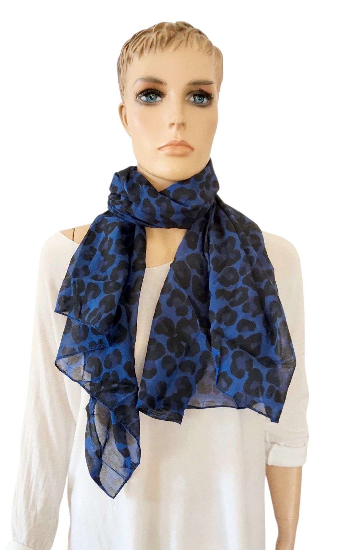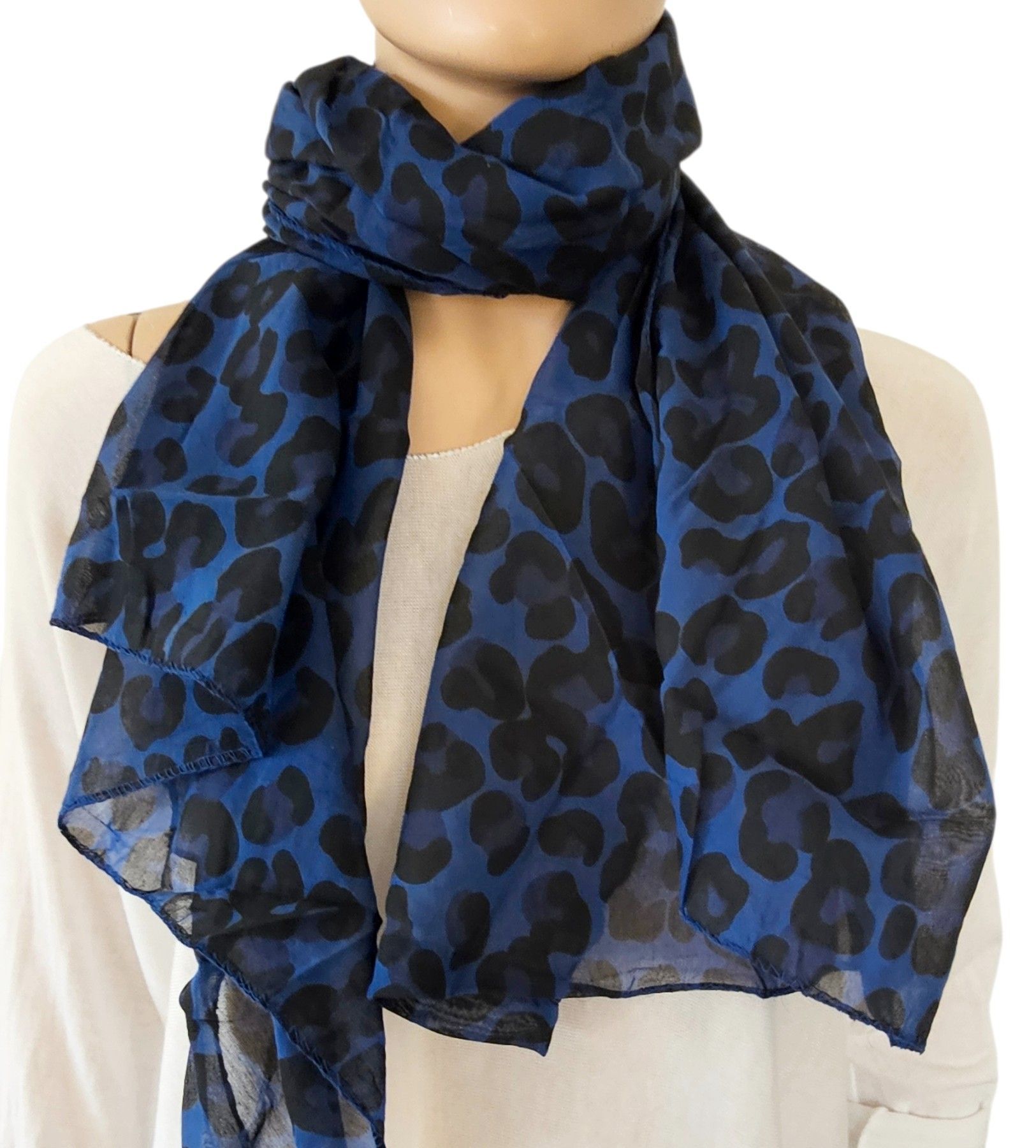 Italy Blogger Schal Tuch Halstuch Seide/Baumwolle Animalprint Royalblau/Schwarz