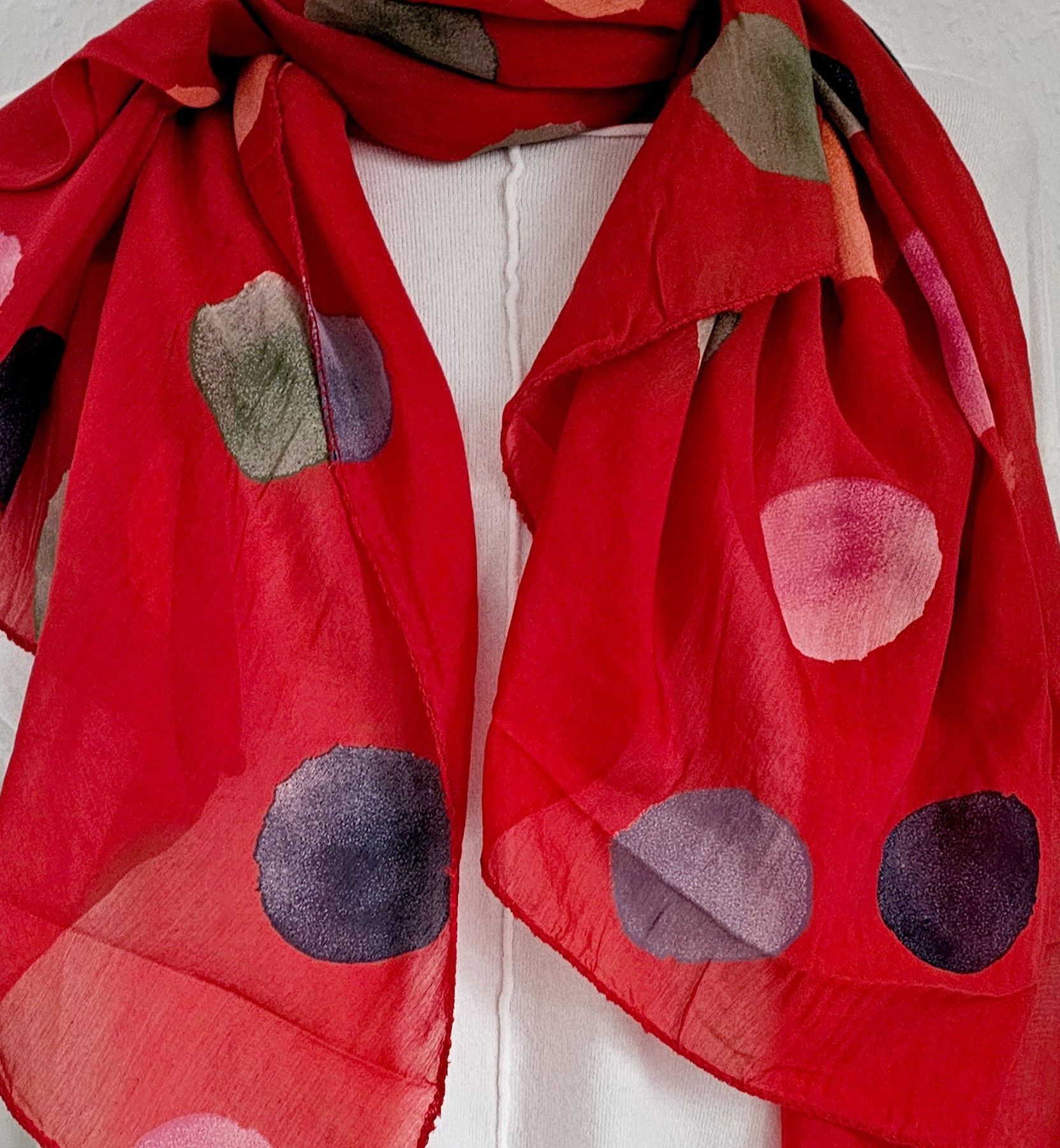 Italy Blogger Schal Tuch Halstuch Seide/Baumwolle asymetrisch bunte Punkte Rot