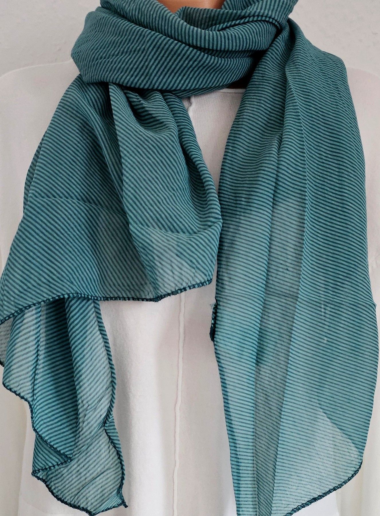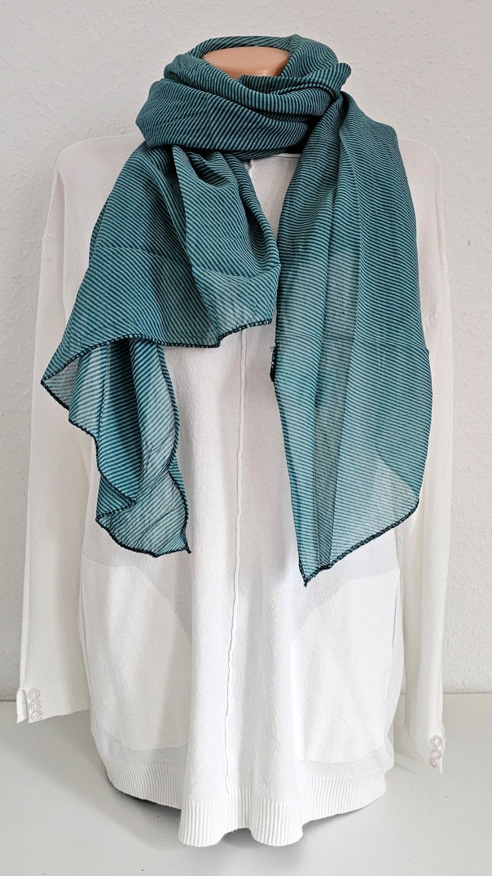 Italy Blogger Schal Tuch Halstuch Seide/Baumwolle asymetrisch Streifen Petrol/Schwarz