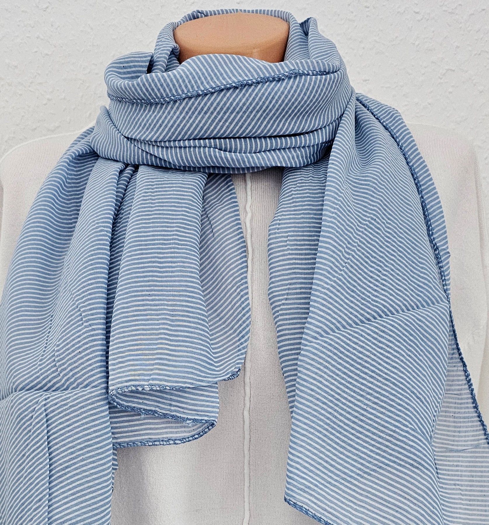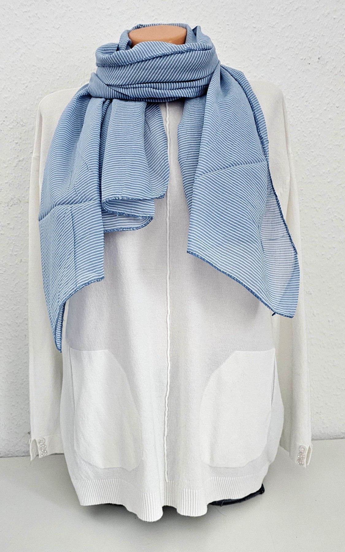Italy Blogger Schal Tuch Halstuch Seide/Baumwolle asymetrisch Streifenprint Hellblau