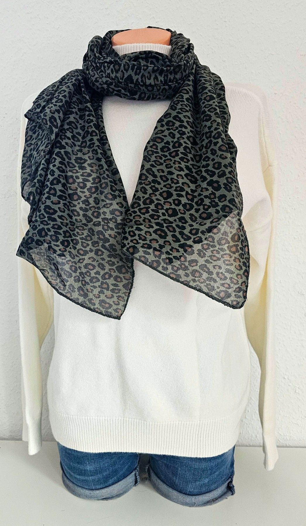 Italy Blogger Schal Tuch Halstuch Seide/Baumwolle Leoprint Grün/Braun/Schwarz
