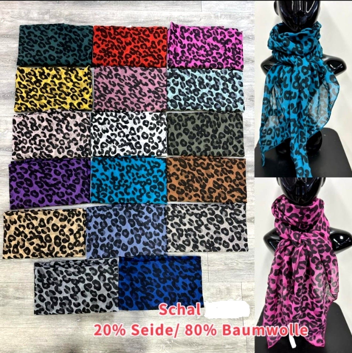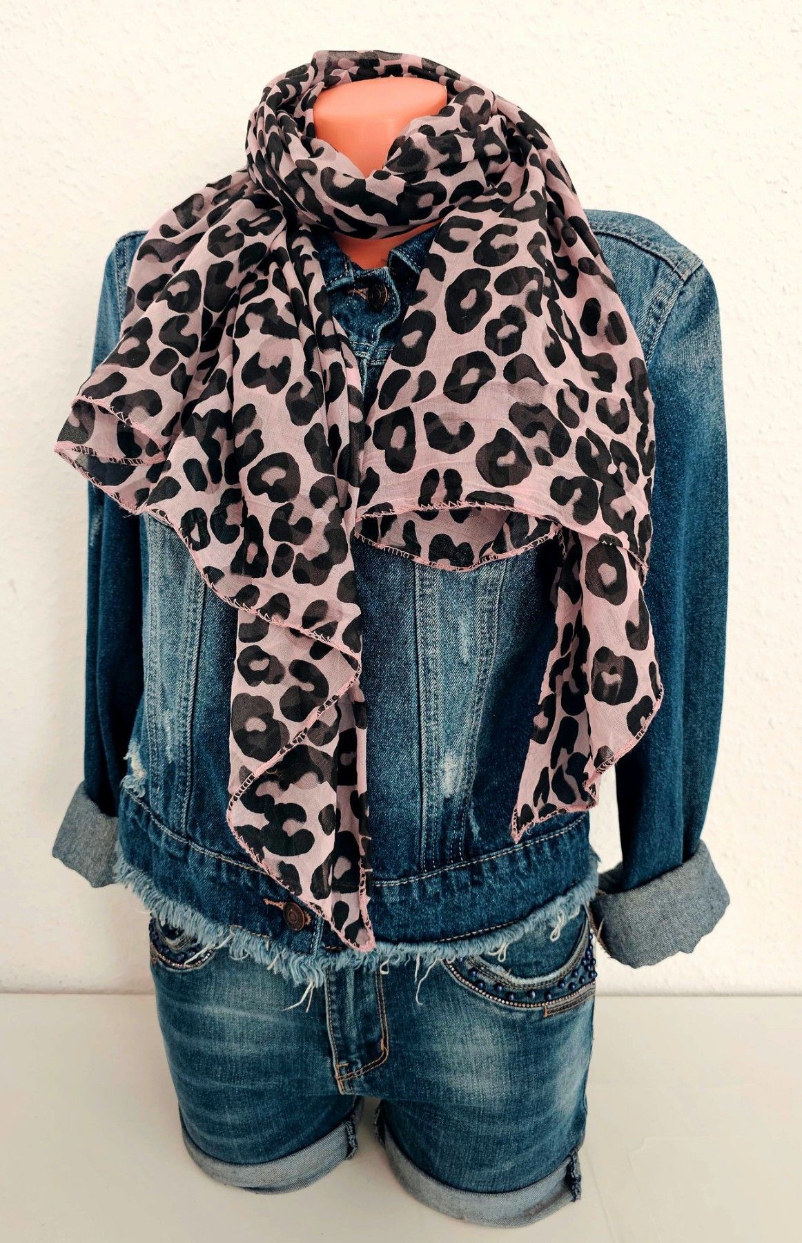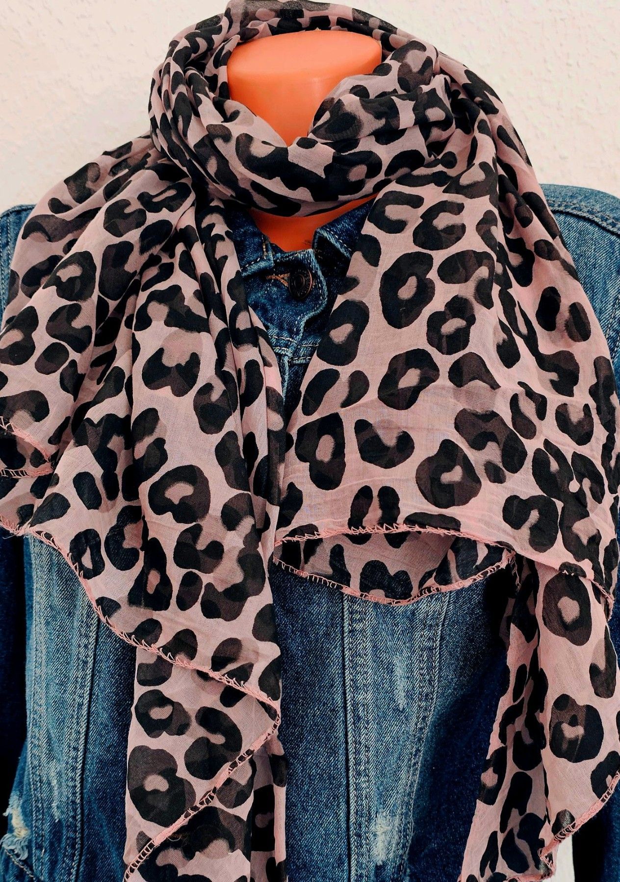 Italy Blogger Schal Tuch Halstuch Seide/Baumwolle Leoprint Rosé/Schwarz