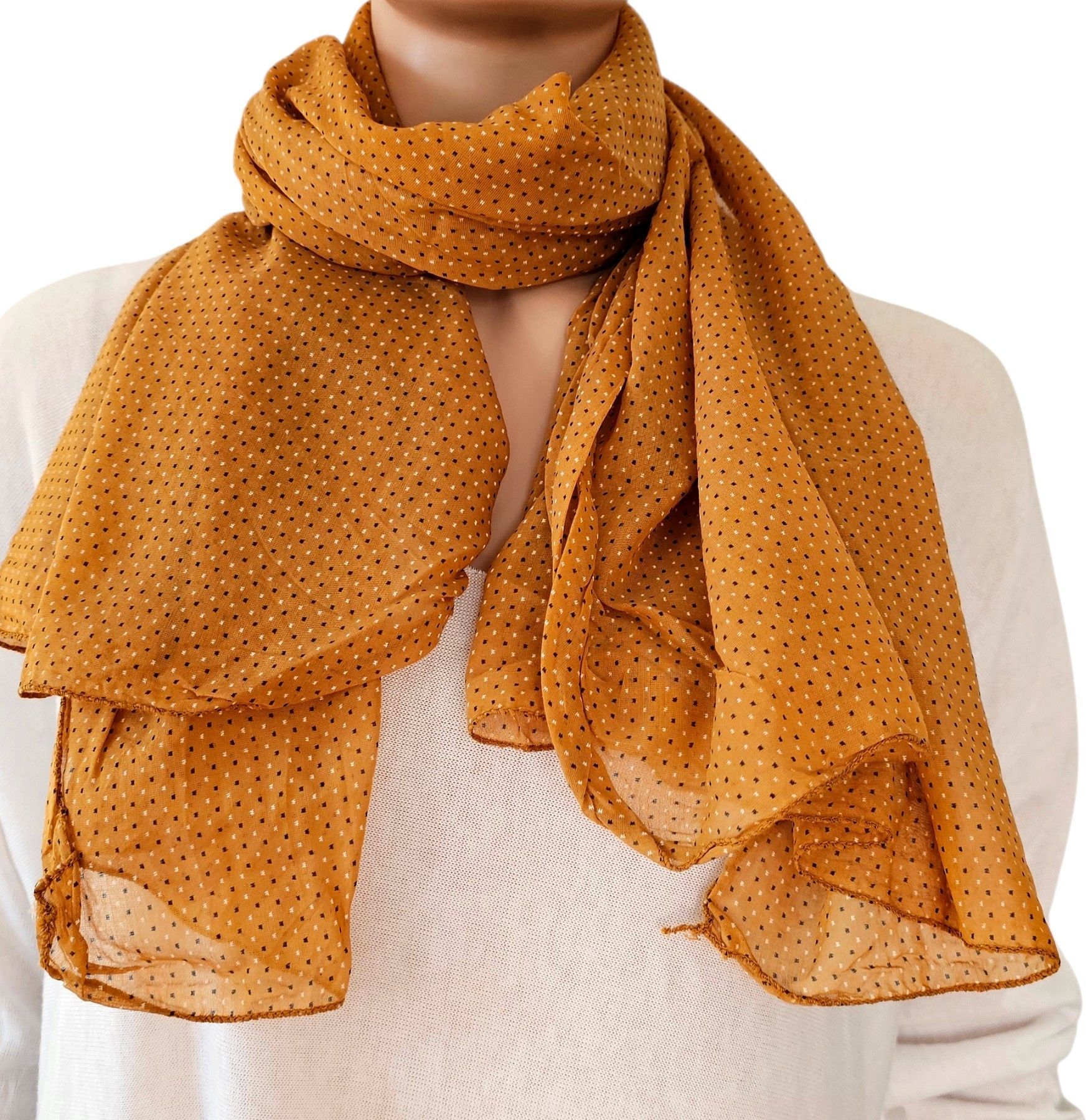 Italy Blogger Schal Tuch Scarf Halstuch Seide/Baumw. asymetrisch Pünktchen Curry