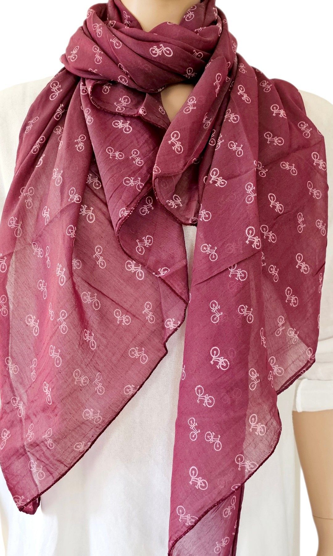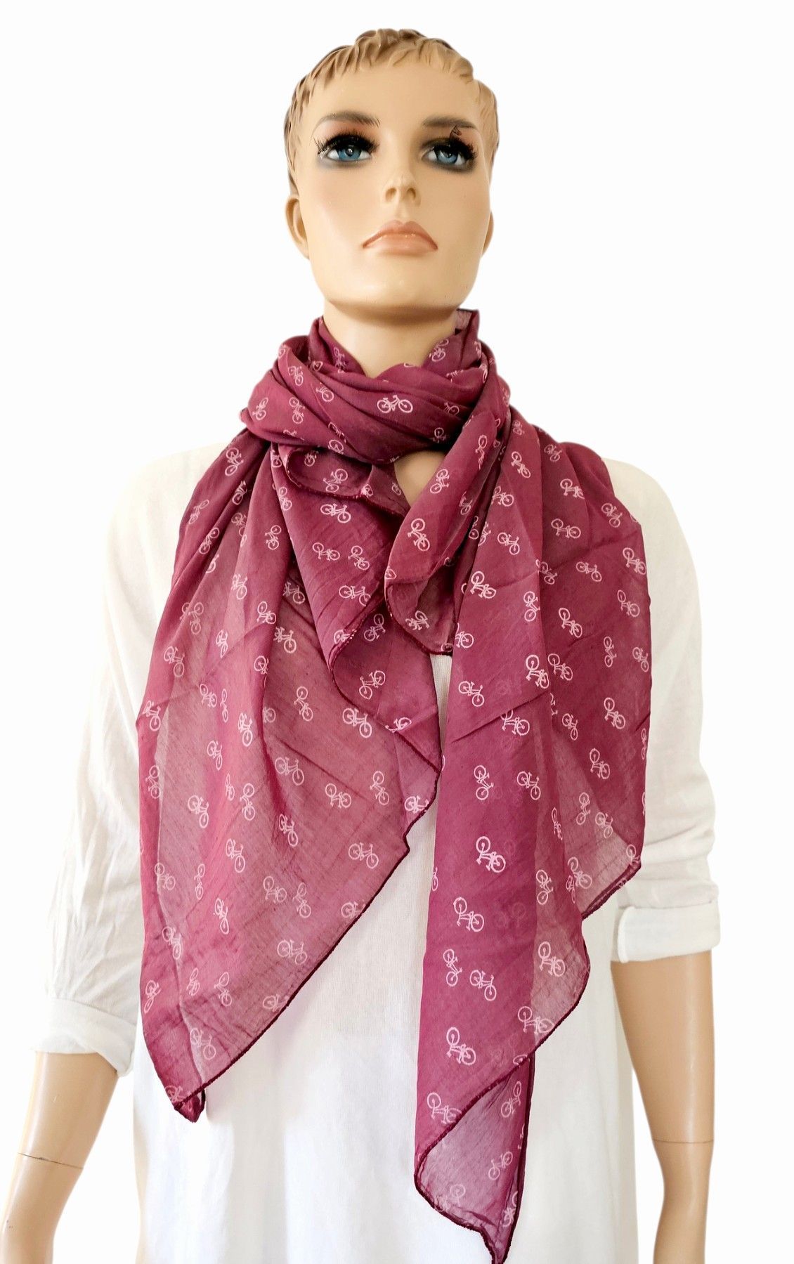 Italy Blogger Schal Tuch Scarf Halstuch Seide/Baumwolle Fahrradprint Farbe: Beere