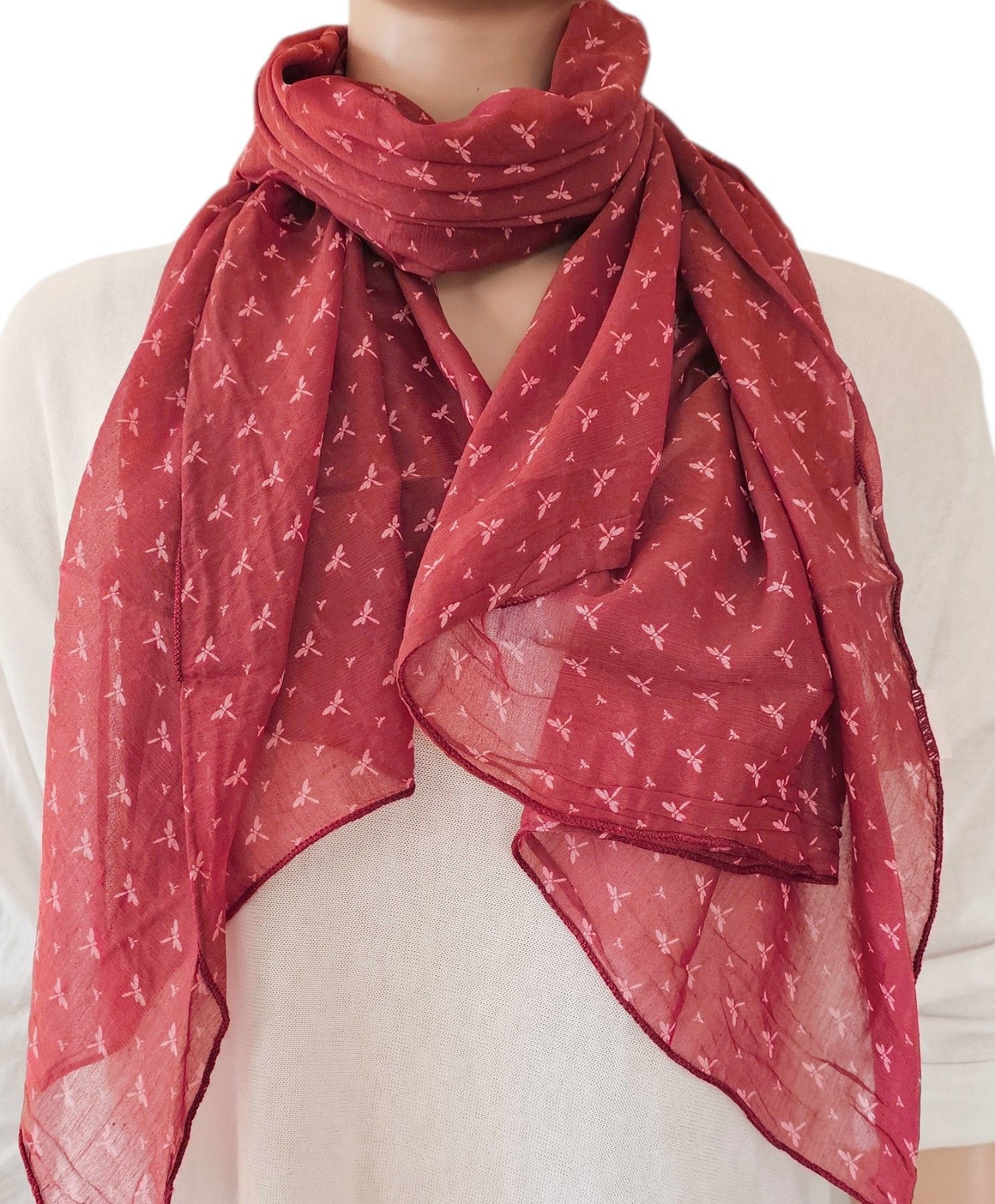 Italy Blogger Schal Tuch Scarf Halstuch Seide/Baumwolle kleine Schmetterlinge Rot