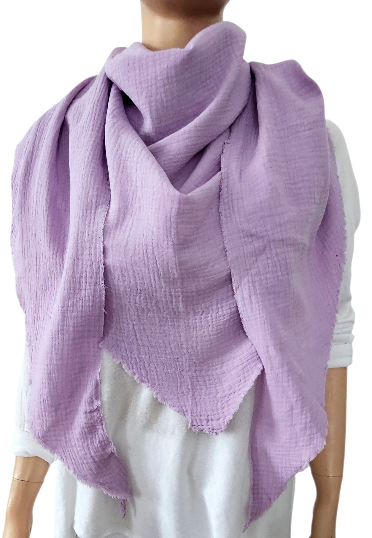 Italy Blogger XXL Dreieckstuch Schal Tuch Musselin 100% Baumwolle Fransen Flieder