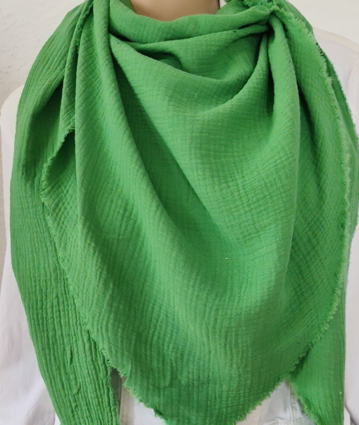 Italy Blogger XXL Dreieckstuch Schal Tuch Musselin 100% Baumwolle Fransen Grün