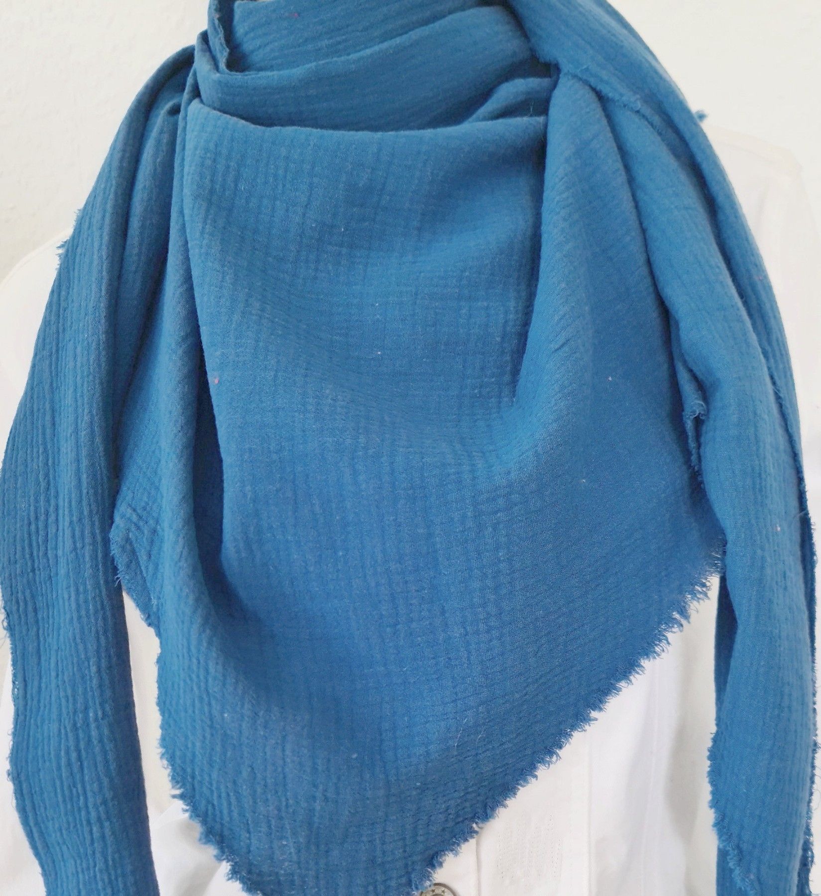 Italy Blogger XXL Dreieckstuch Schal Tuch Musselin 100% Baumwolle Fransen Jeansblau