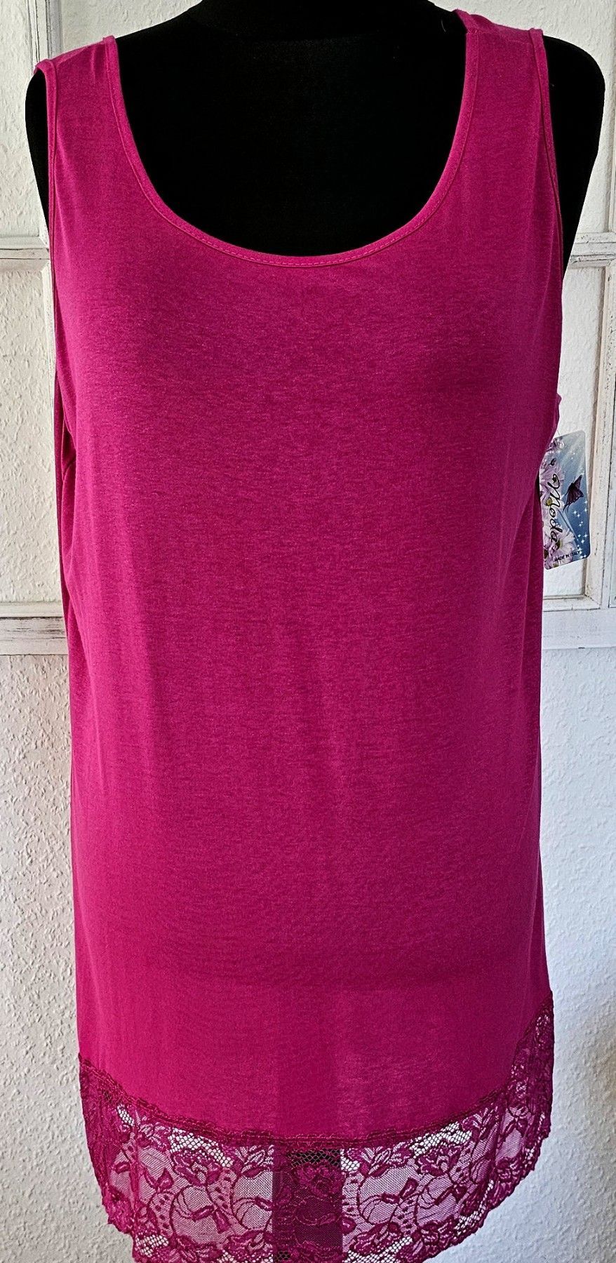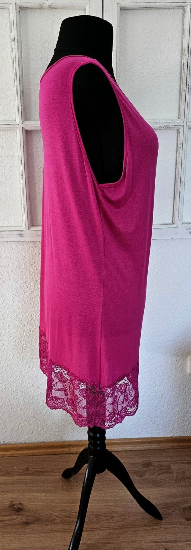 Italy Damen Longtop Unterziehshirt mit Spitze ohne Arm Viskose one size bis 42 Pink