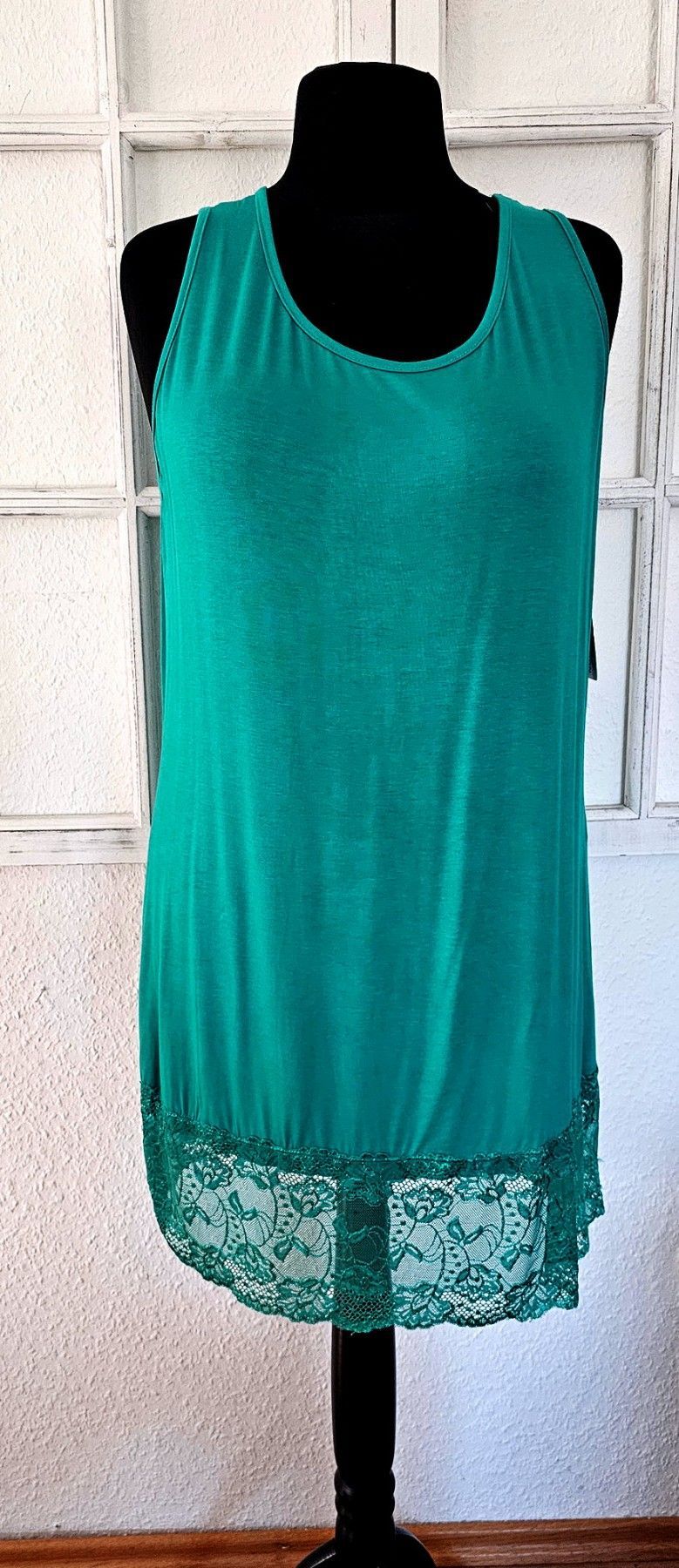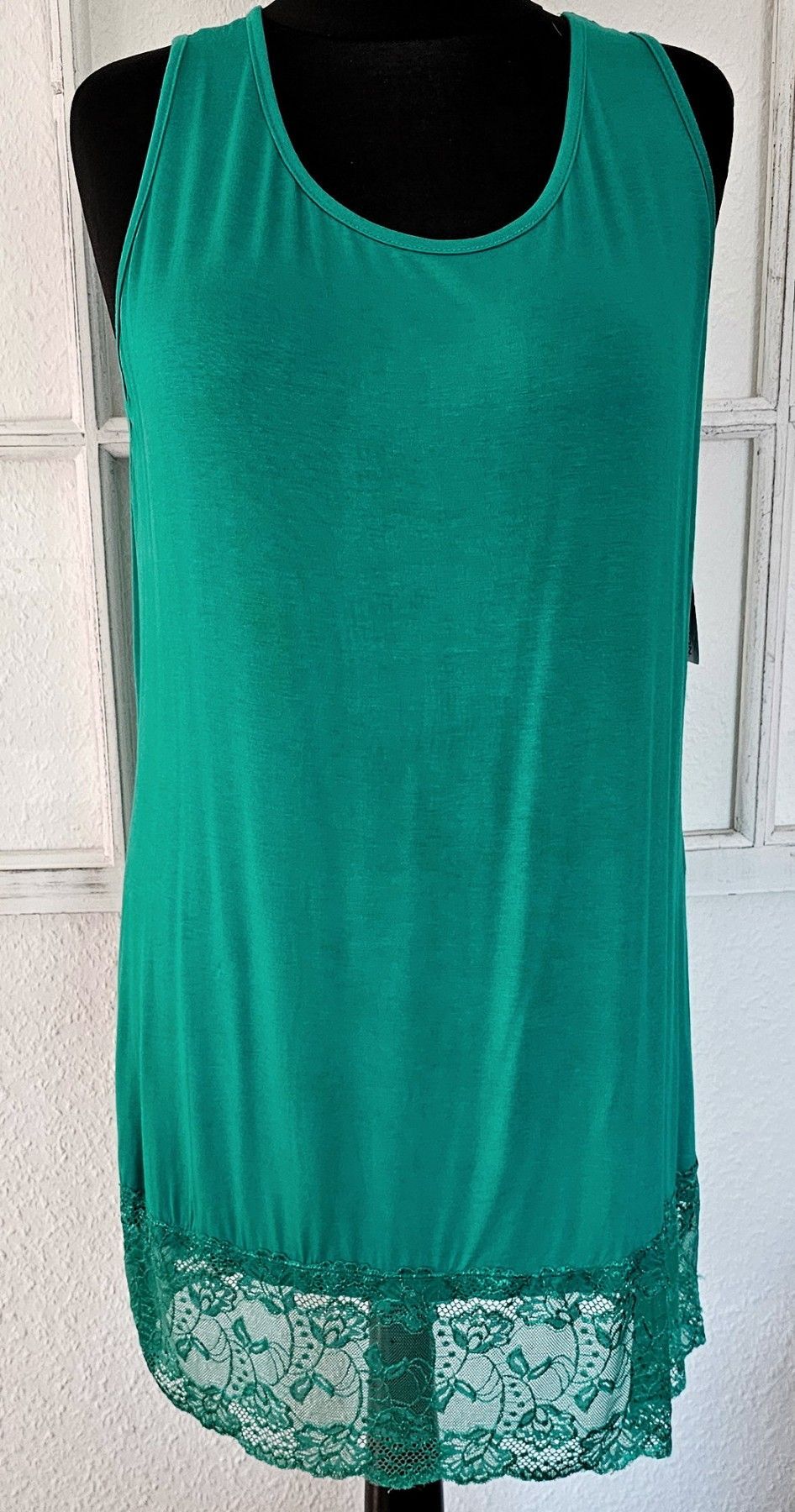 Italy Damen Longtop Unterziehshirt mit Spitze ohne Arm Viskose one size bis 44 Grün