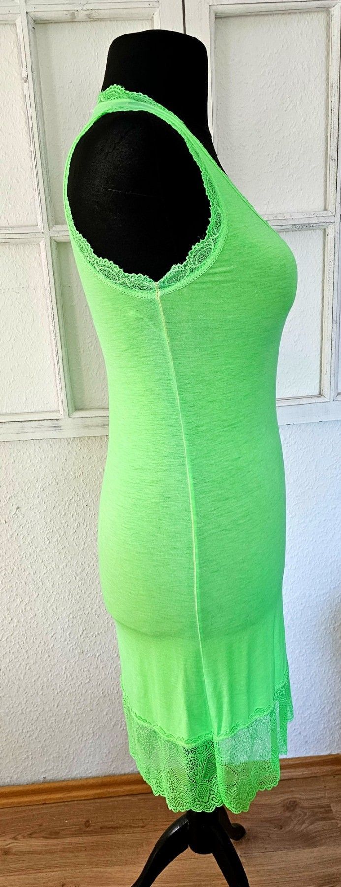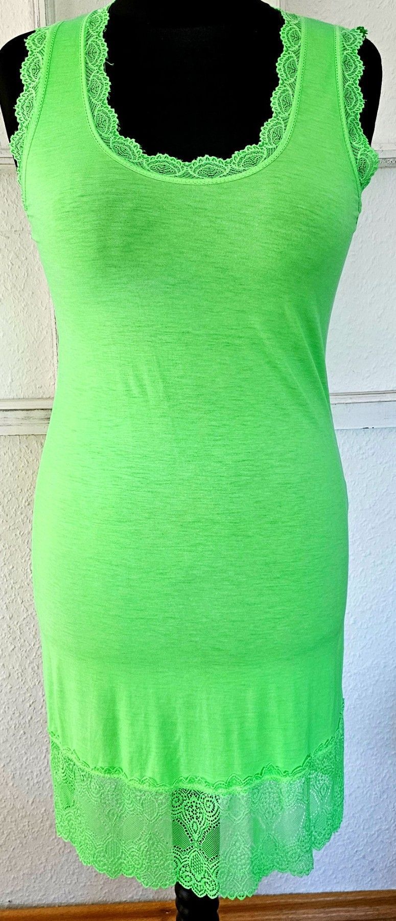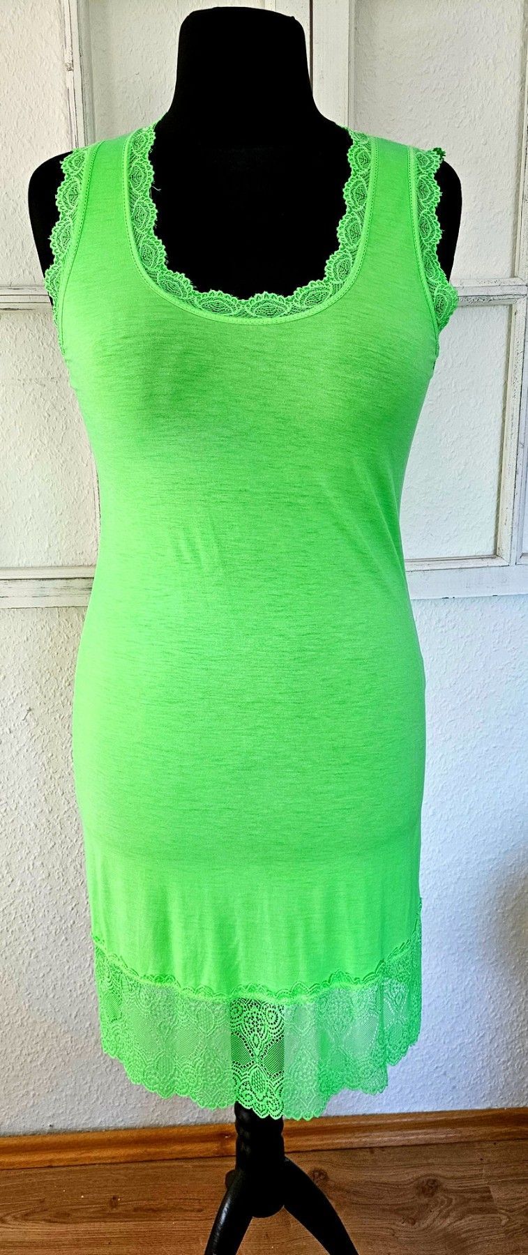 Italy Damen Longtop Unterziehshirt mit Spitze ohne Arm Viskose one size in Hellgrün