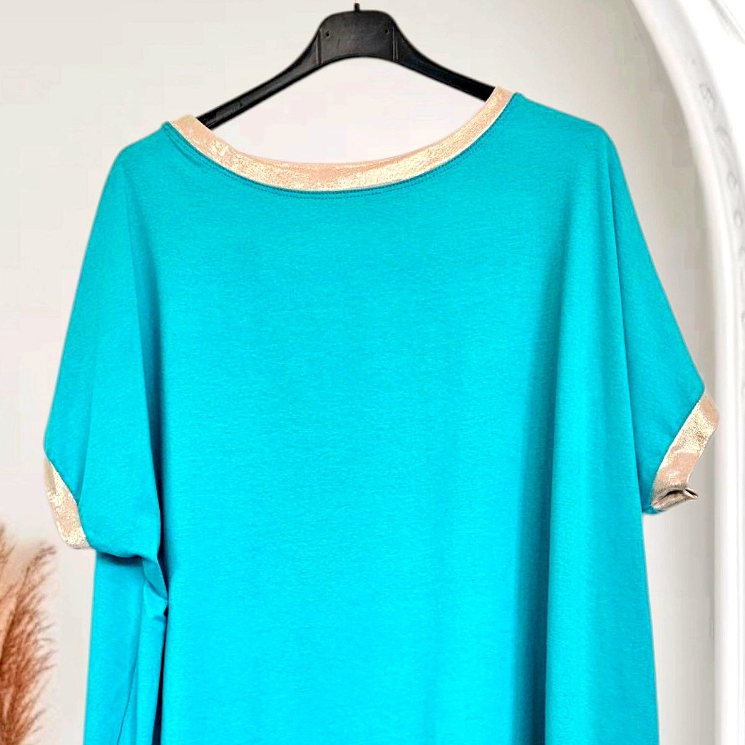 Italy Longtunika/Kleid Sommerkleid Baumwolle kurzarm bis Gr. 48/50 5 Farben