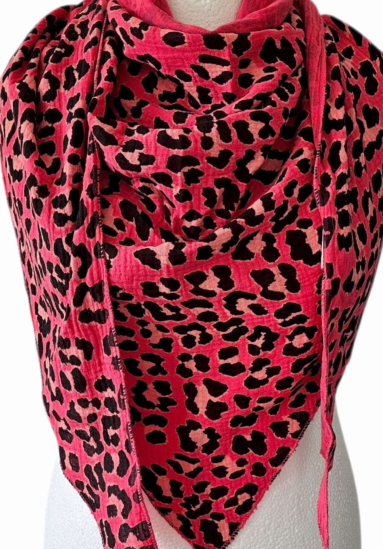 Italy Musselin Dreieckstuch Schal Tuch Animalprint Baumwolle Pink/Schwarz/Lachs