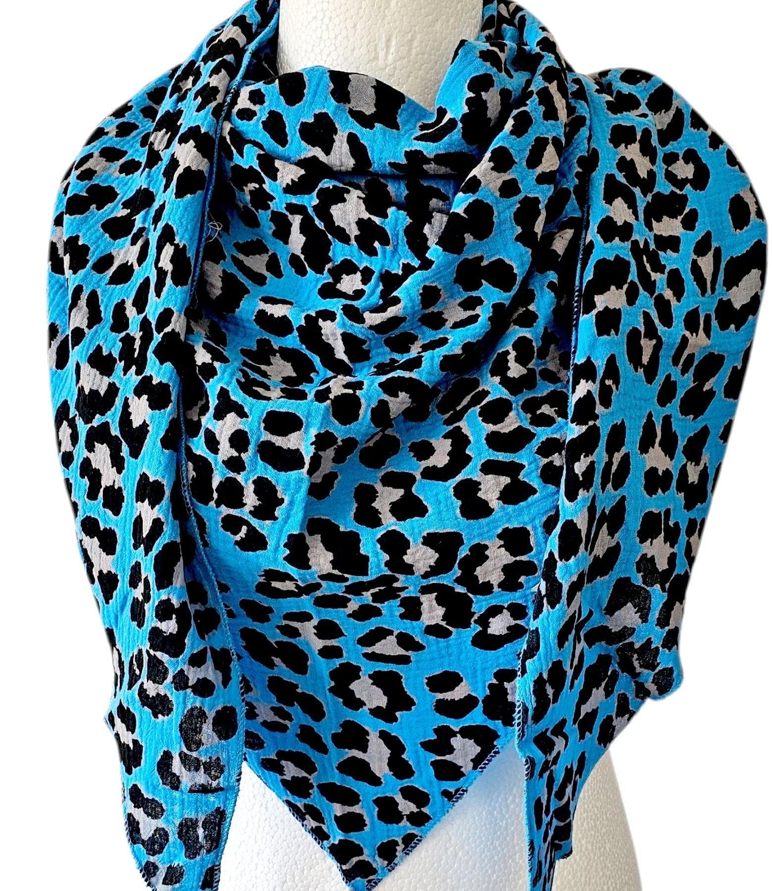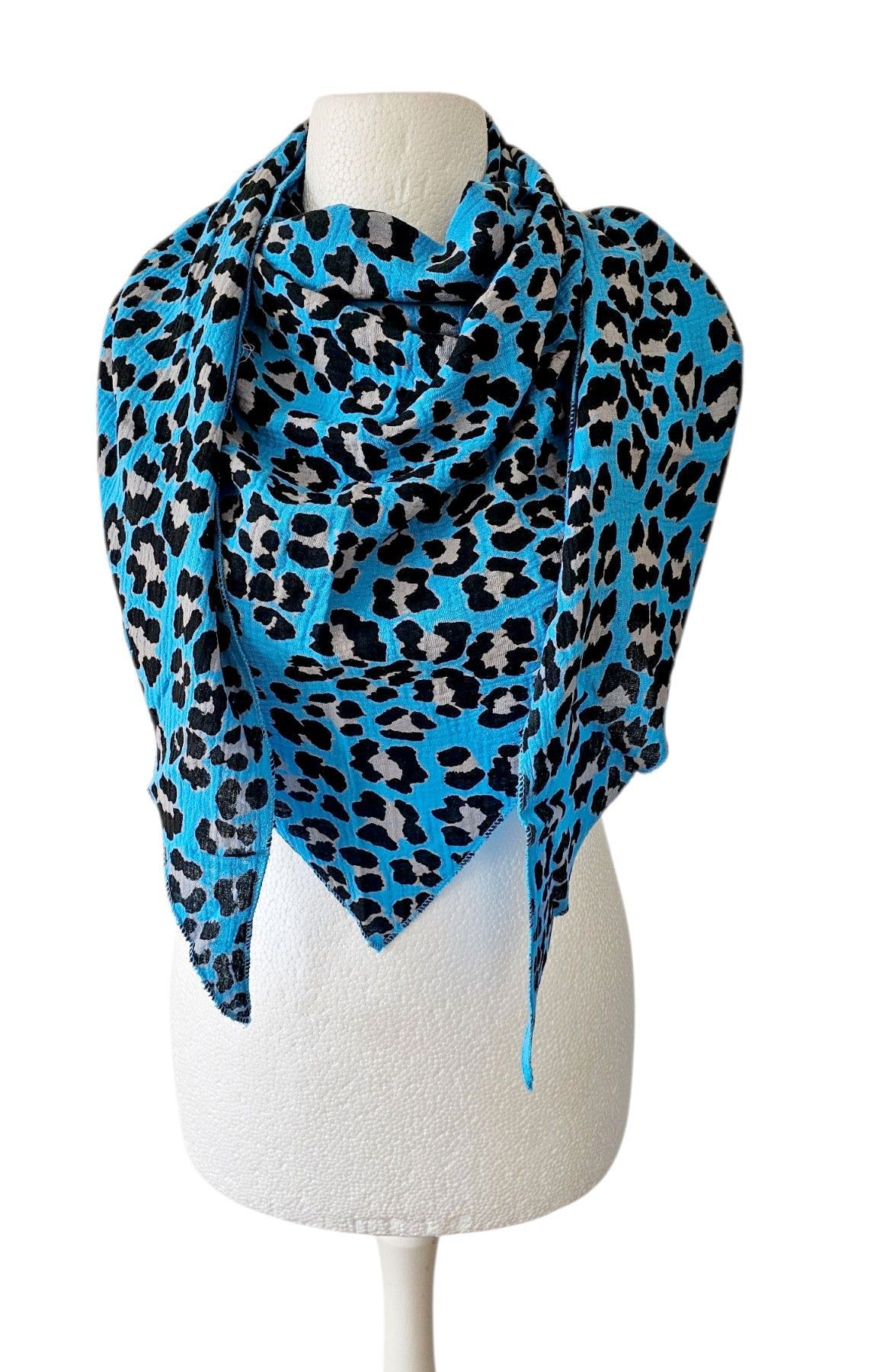 Italy Musselin Dreieckstuch Schal Tuch Animalprint Baumwolle Royalblau/Schwarz/Grau