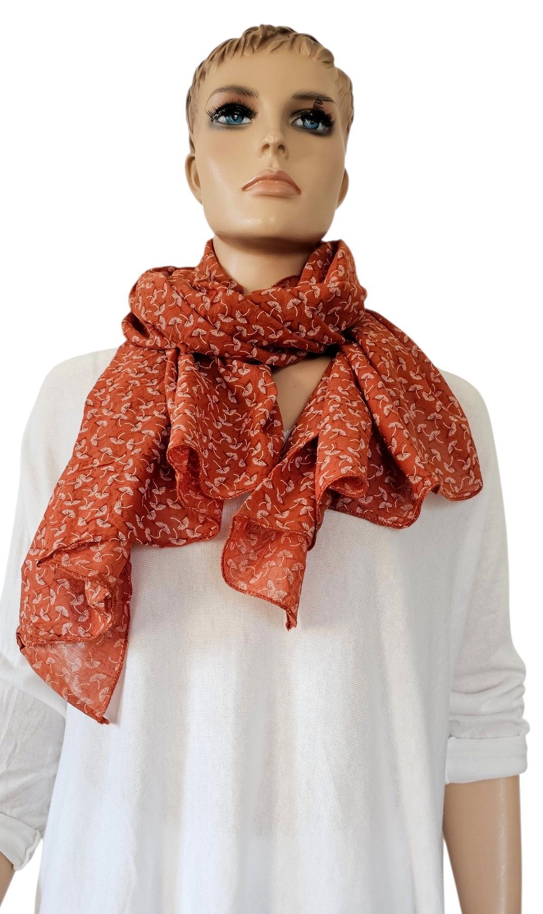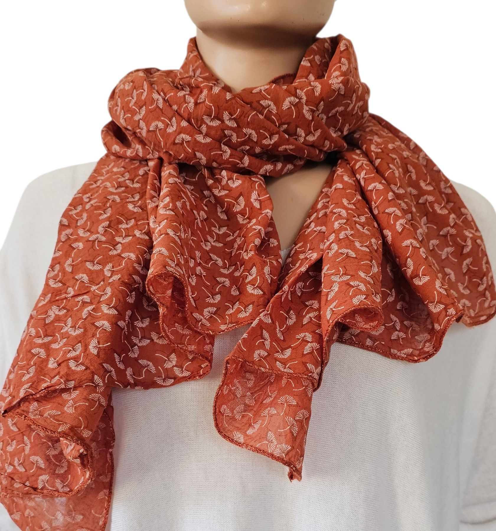 Italy Schal Halstuch Scarf Seide/Baumw. asymetrisch kleiner Blätterprint Terrakotta