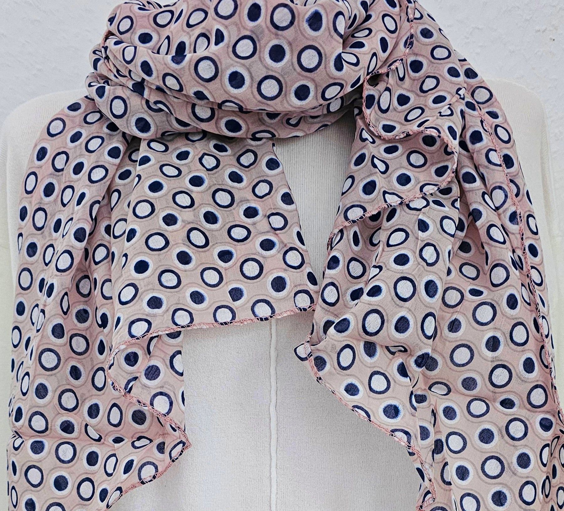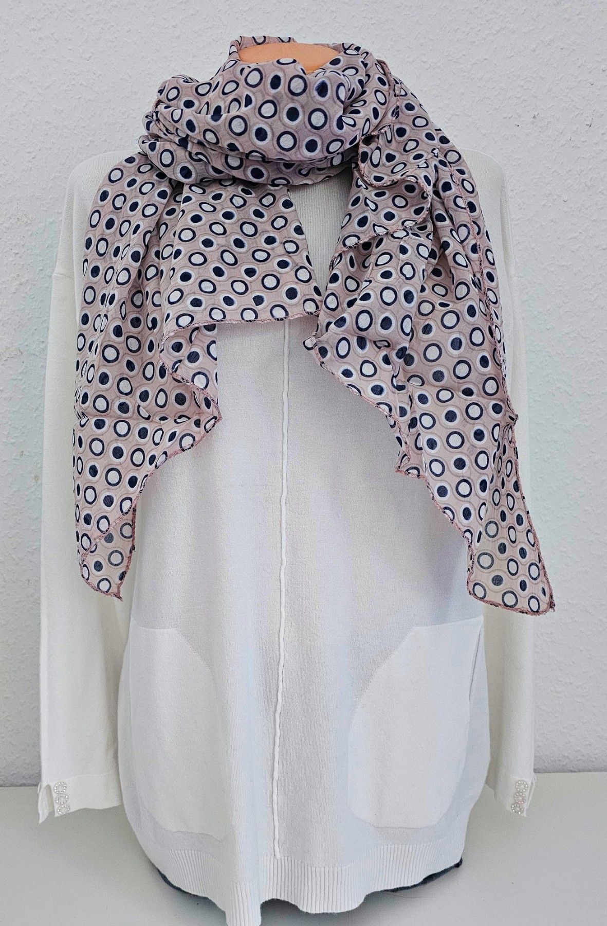 Italy Schal Tuch Halstuch Seide/Baumwolle asymetrisch bunte Punkte Altrosa/Blau