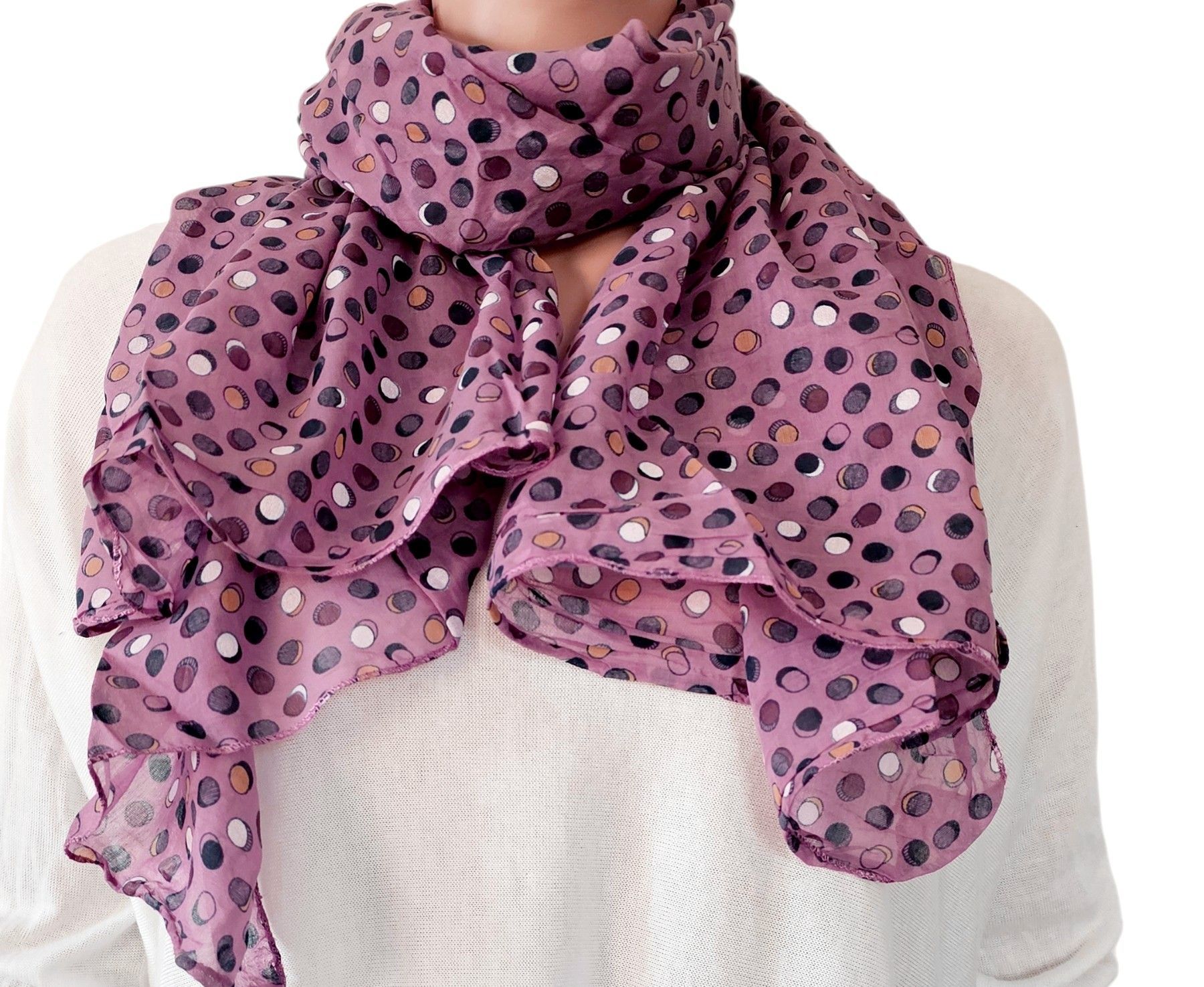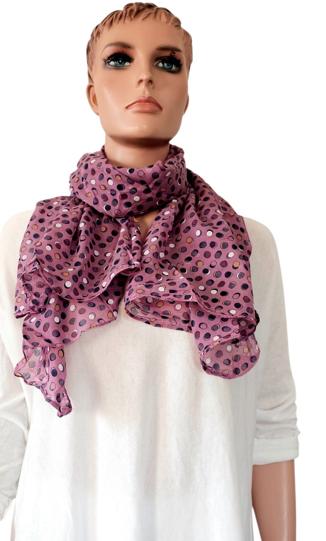 Italy Schal Tuch Halstuch Seide/Baumwolle asymetrisch bunte Punkte dunkles Pink
