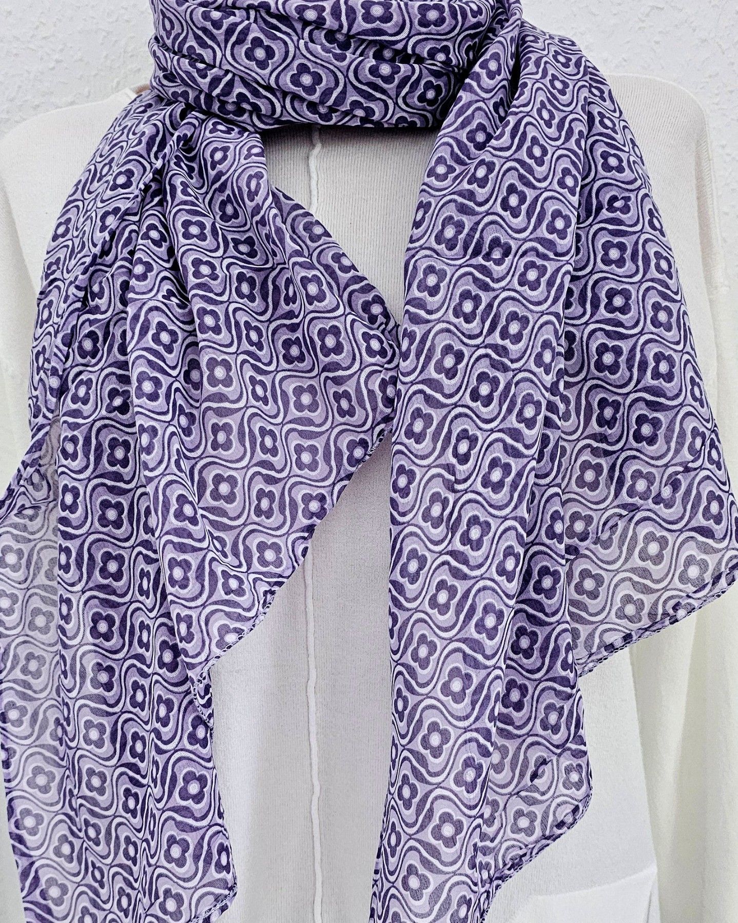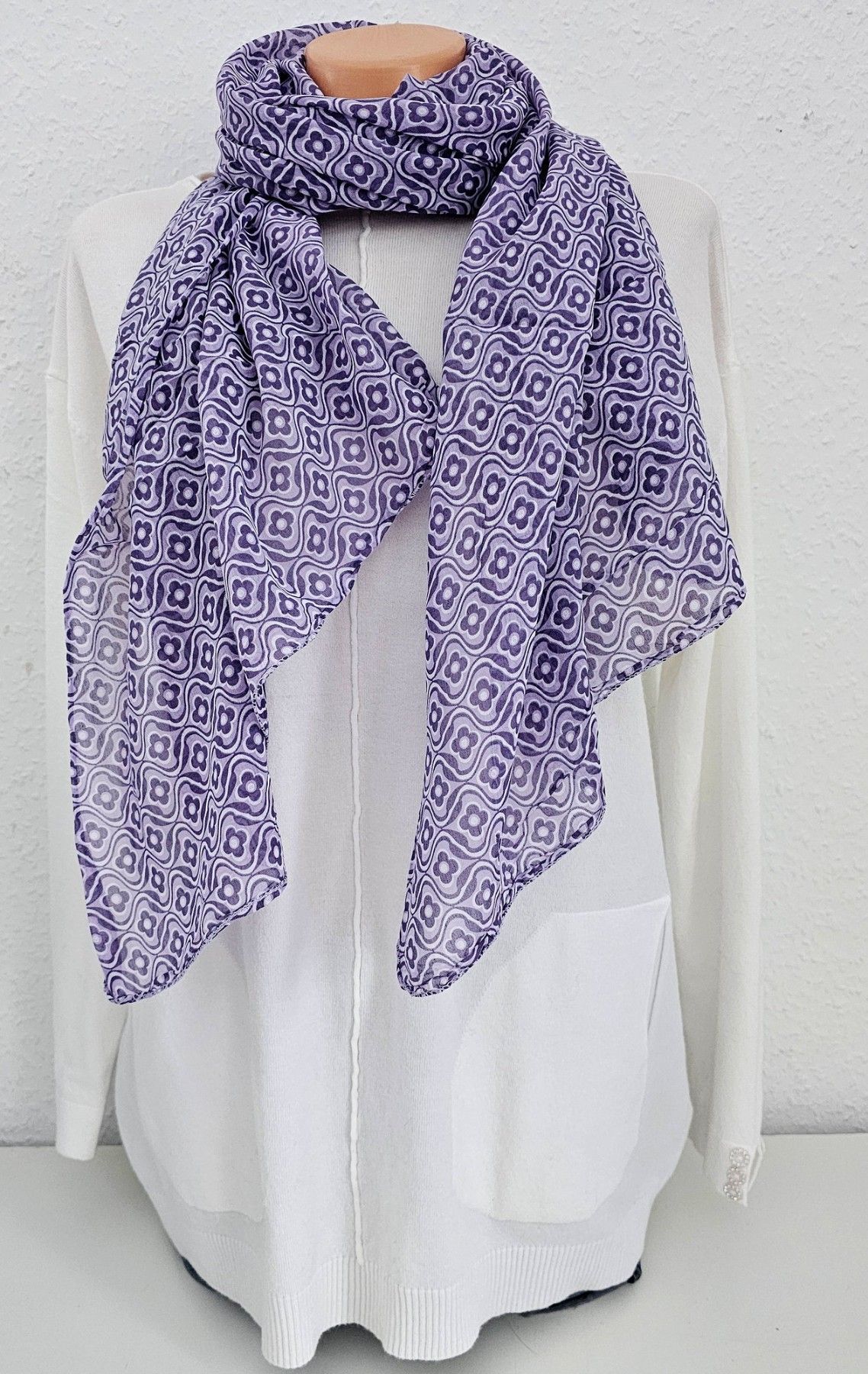 Italy Schal Tuch Scarf Halstuch Seide/Baumwolle asymetrisch Blüten Flieder/Weiß