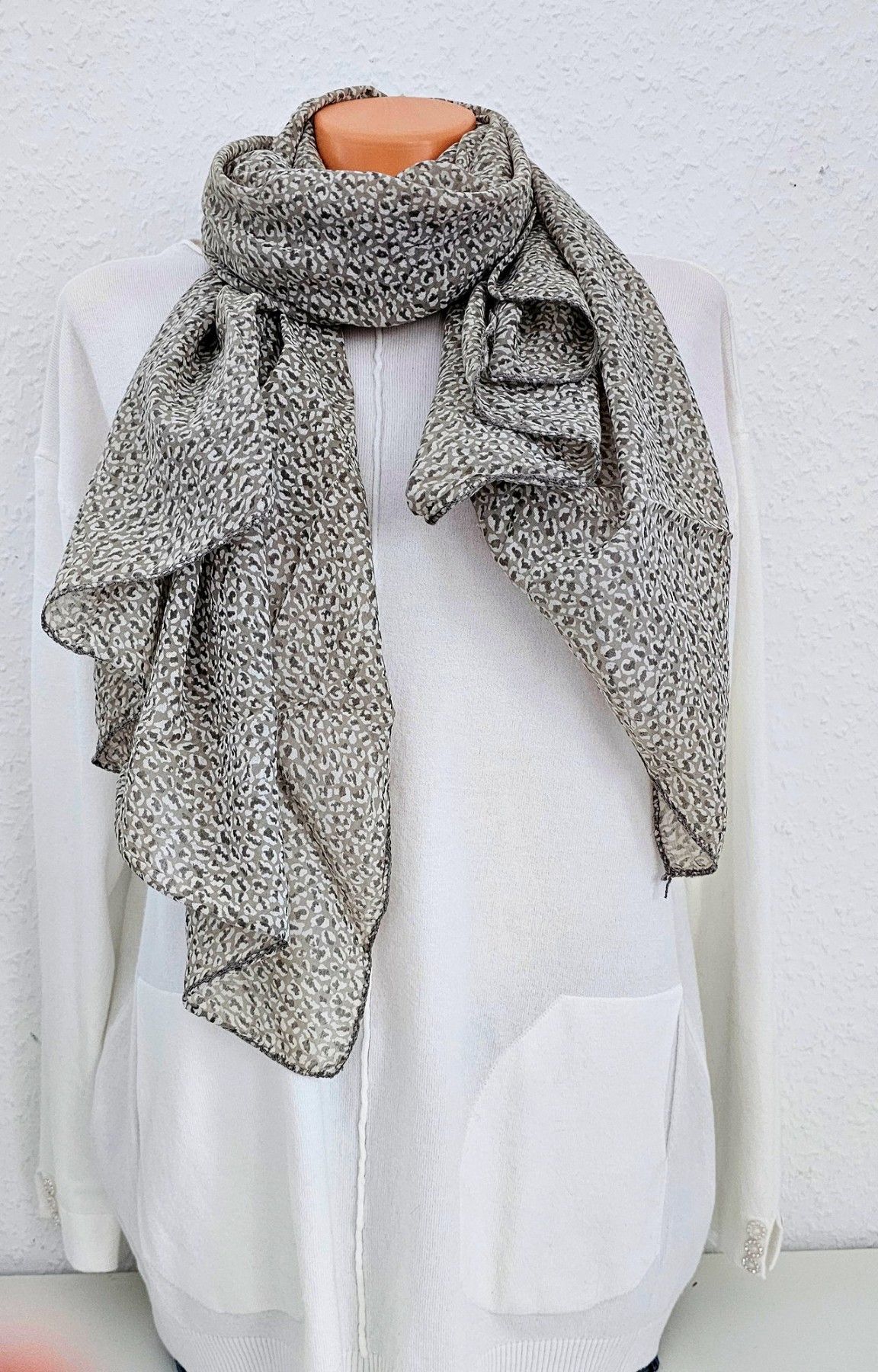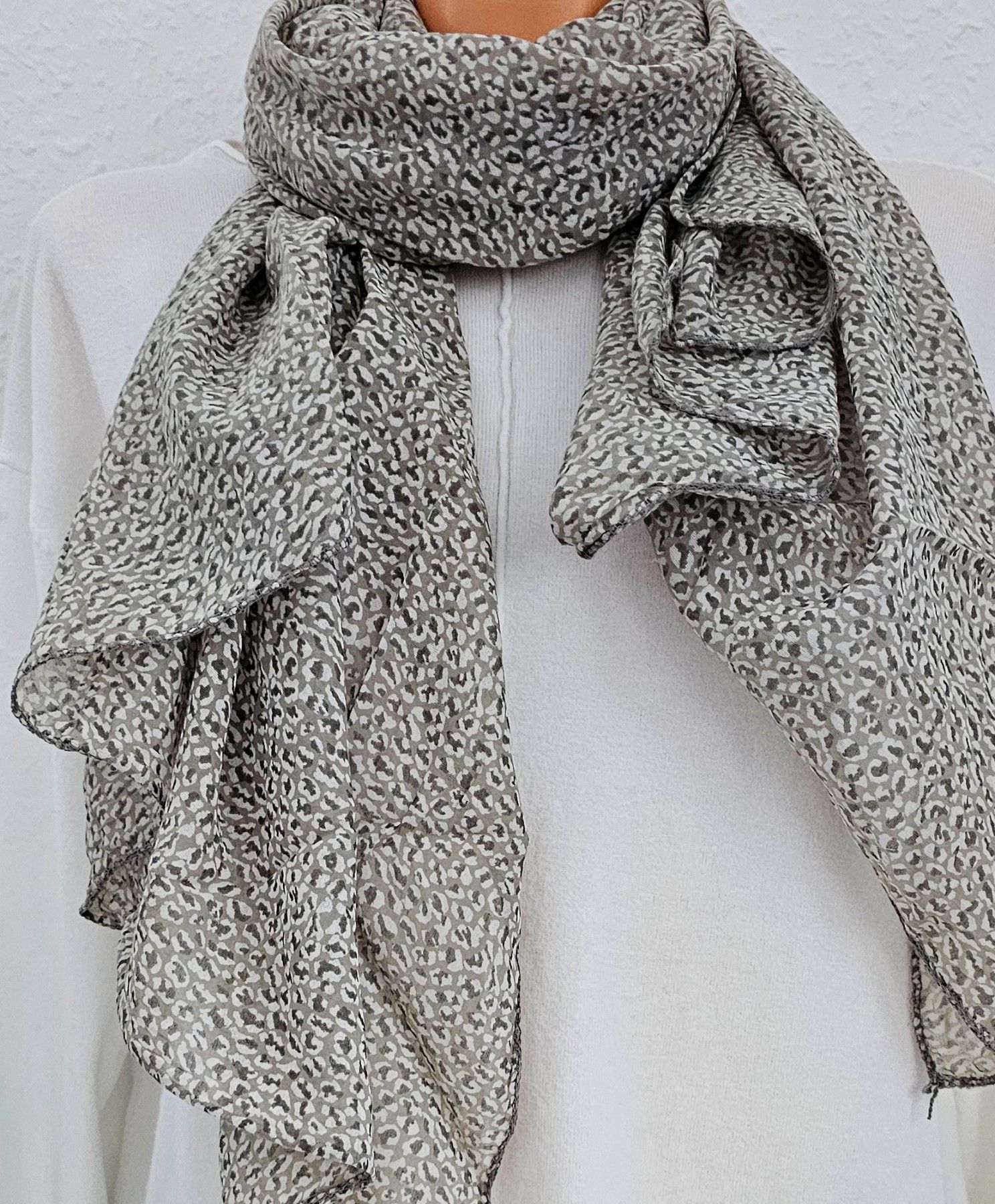 Italy Schal Tuch Scarf Halstuch Seide/Baumwolle asymetrisch kleiner Print Khaki/Hell