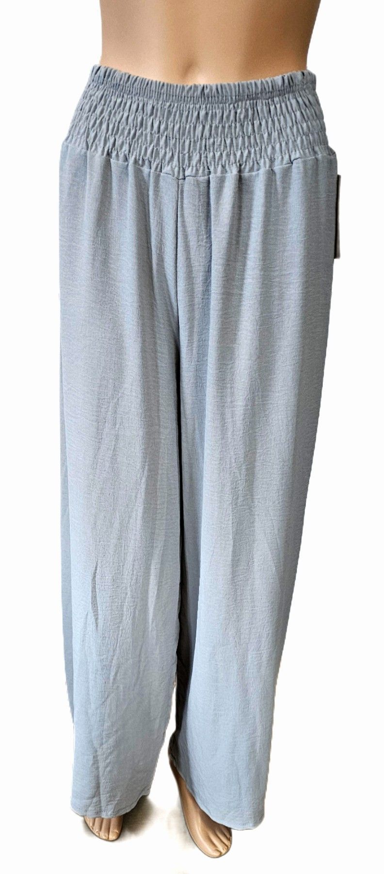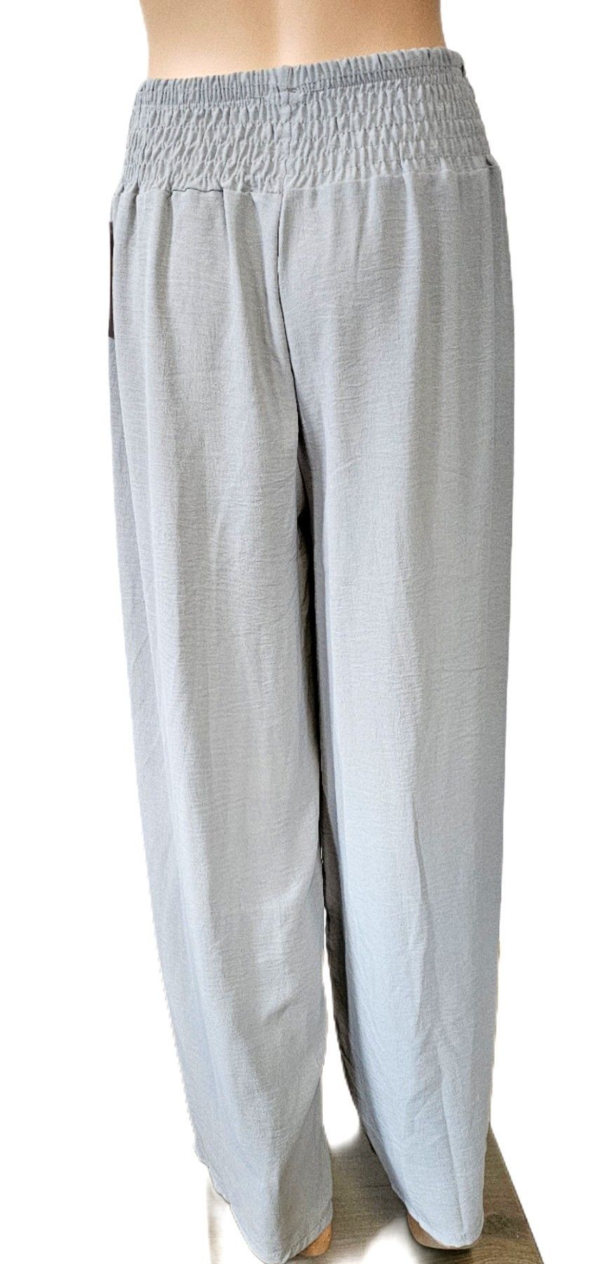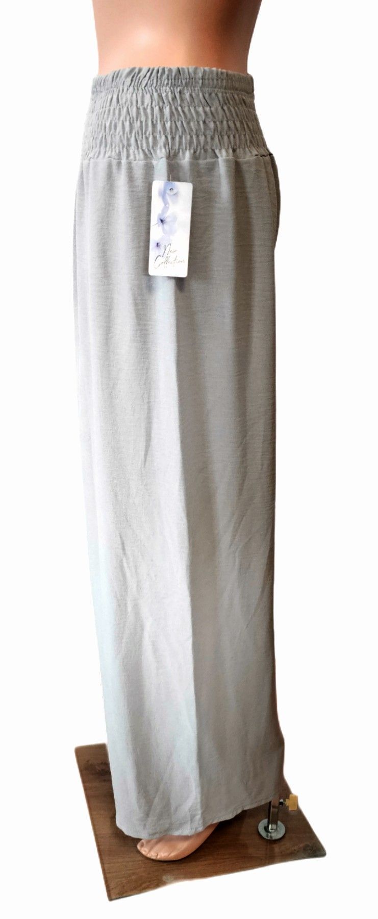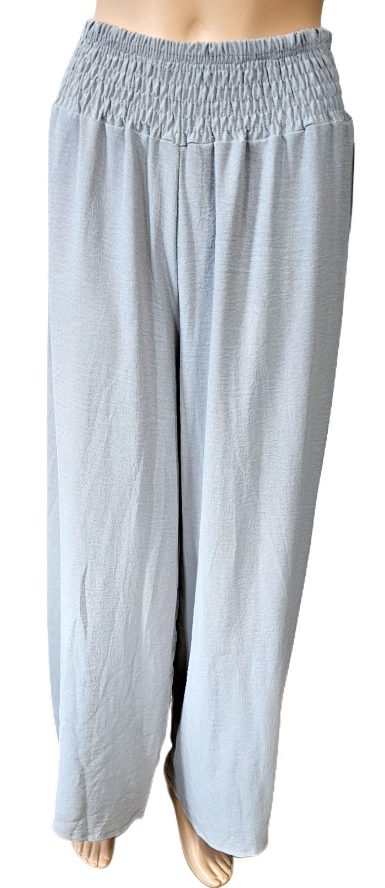 Italy Sommerhose Hose Gummizug weites Bein 100 % fliessende Viskose Hellgrau