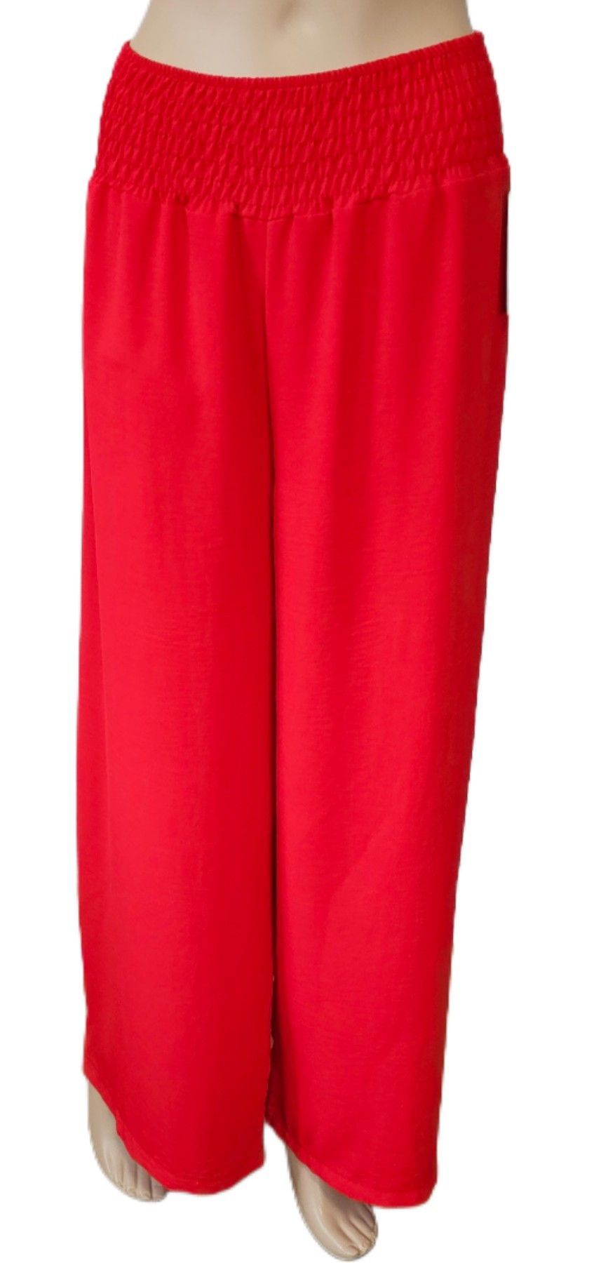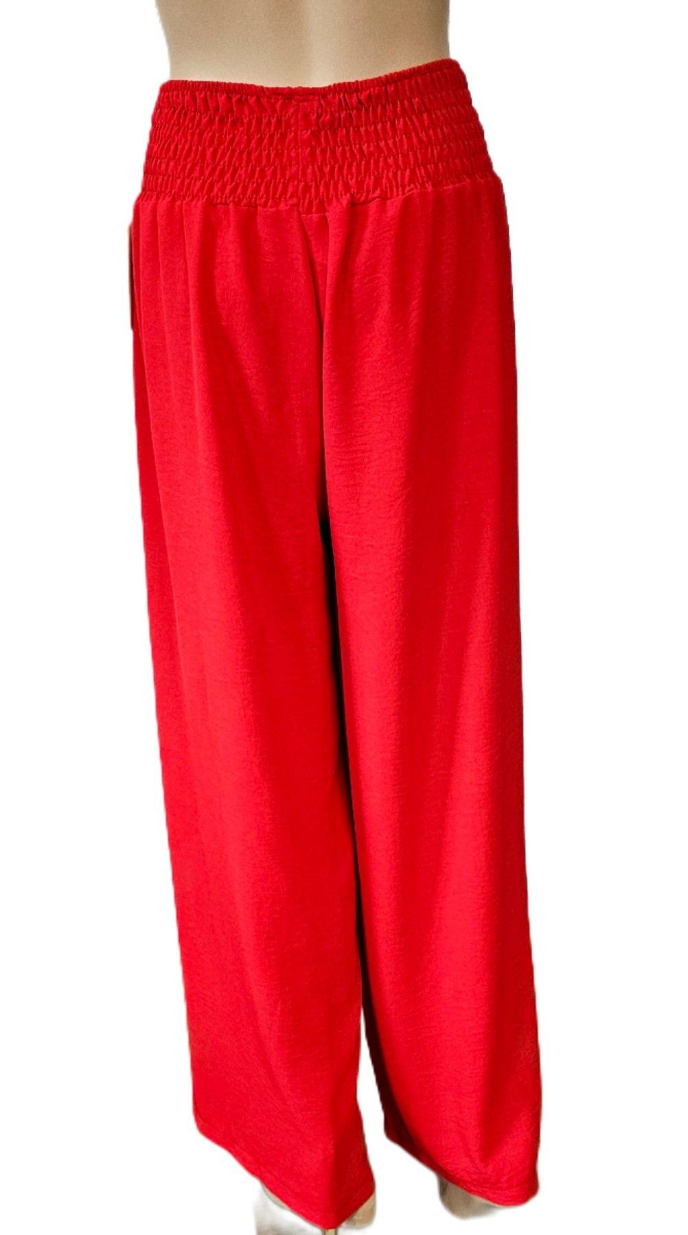 Italy Sommerhose Hose Gummizug weites Bein 100 % fliessende Viskose in Rot