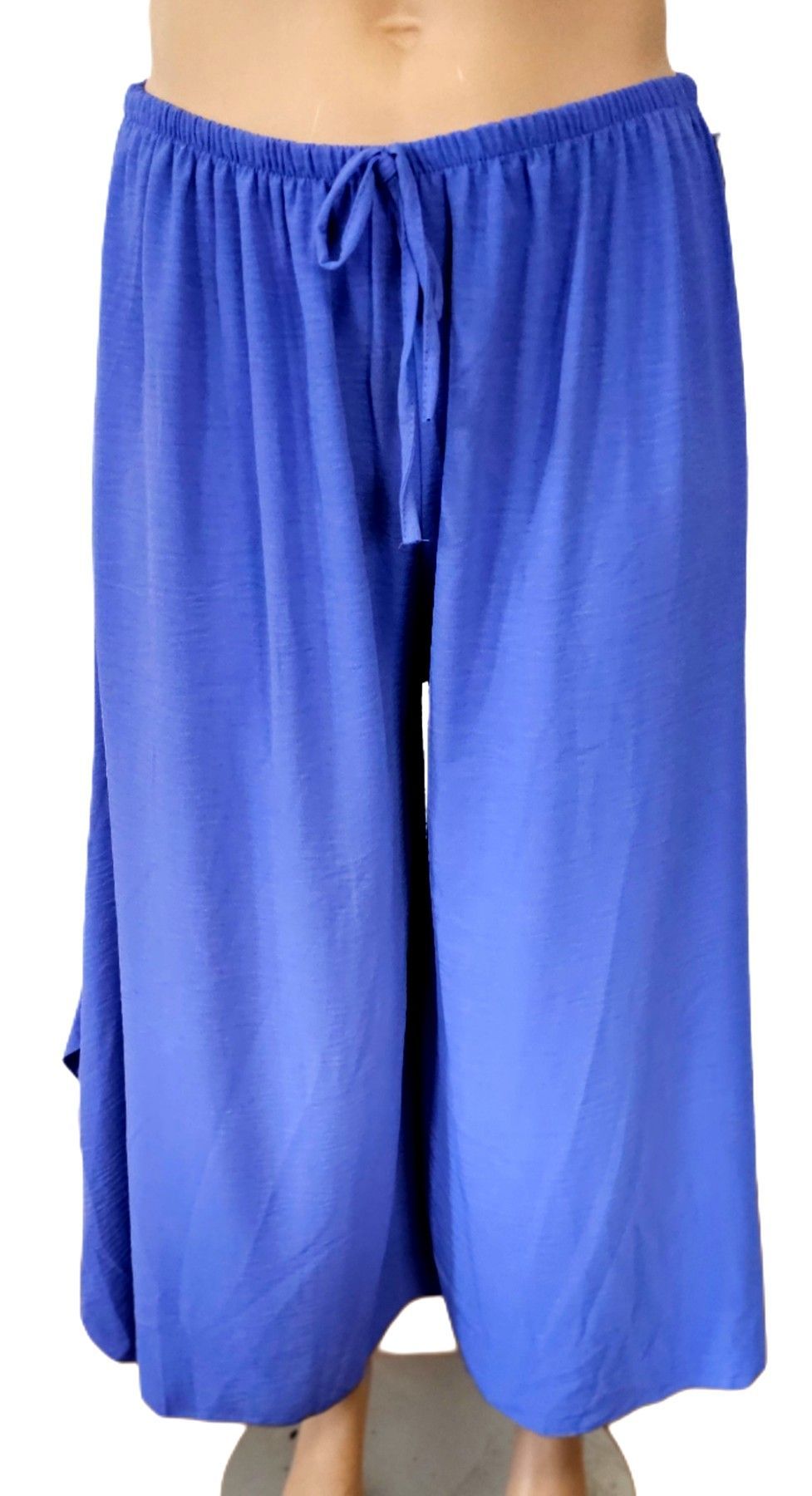 Italy Sommerhose Hose Gummizug weites Bein Viskose one size bis 52/54 in Blau