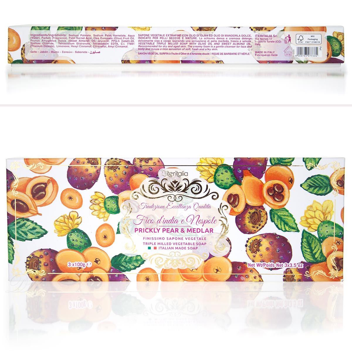 Iteritalia Box Geschenkset in Plissè Papier Fico d'India e Nespole Seife 3 x 100 g