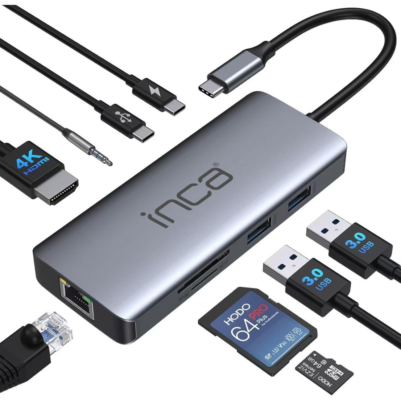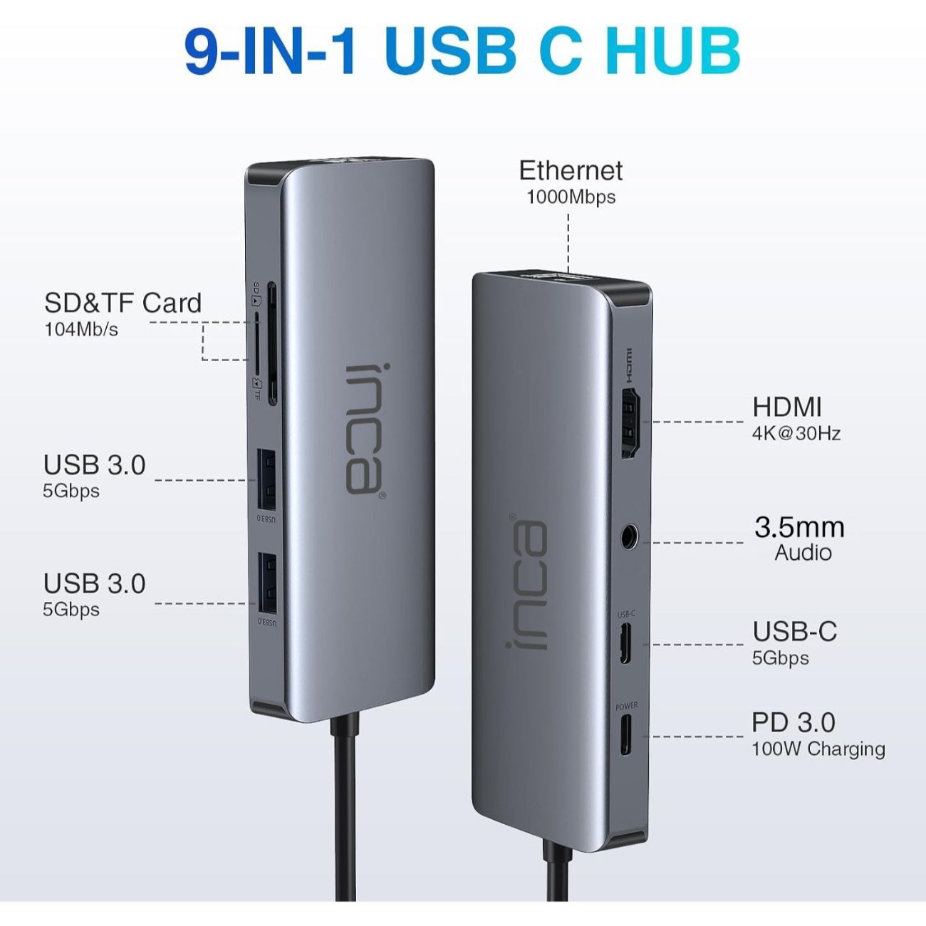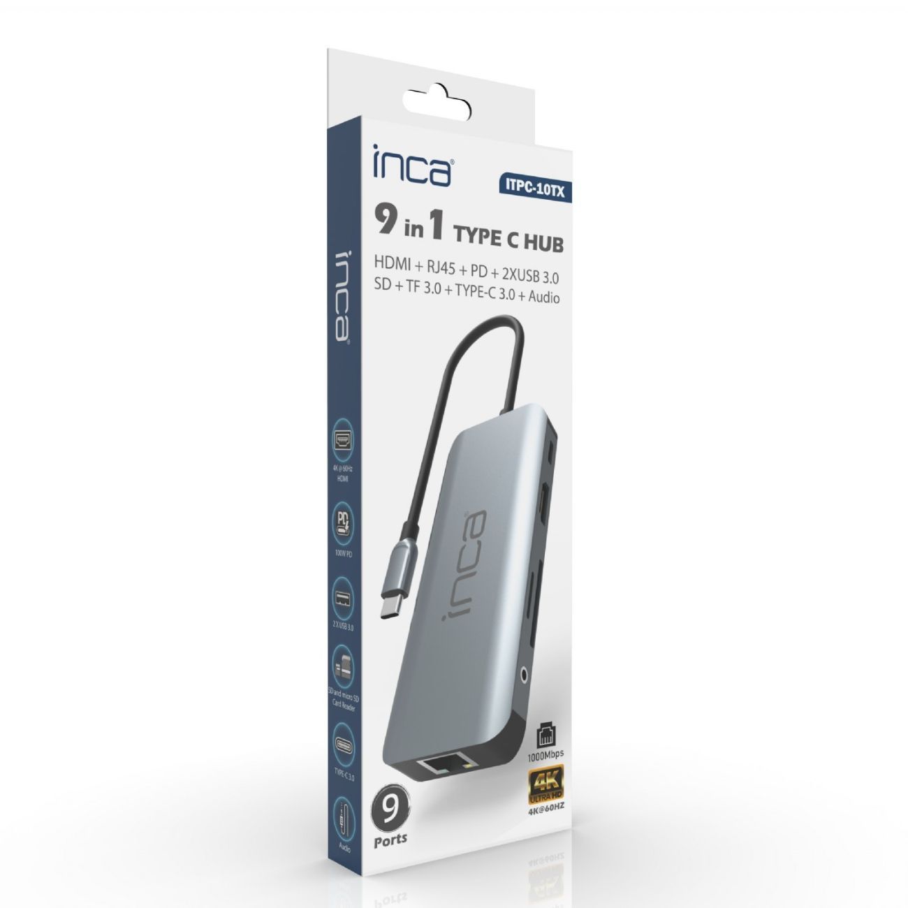 ITPC-10TX USB-C Hub 9-in-1 Aluminium 4K 60 Hz 100 W PD