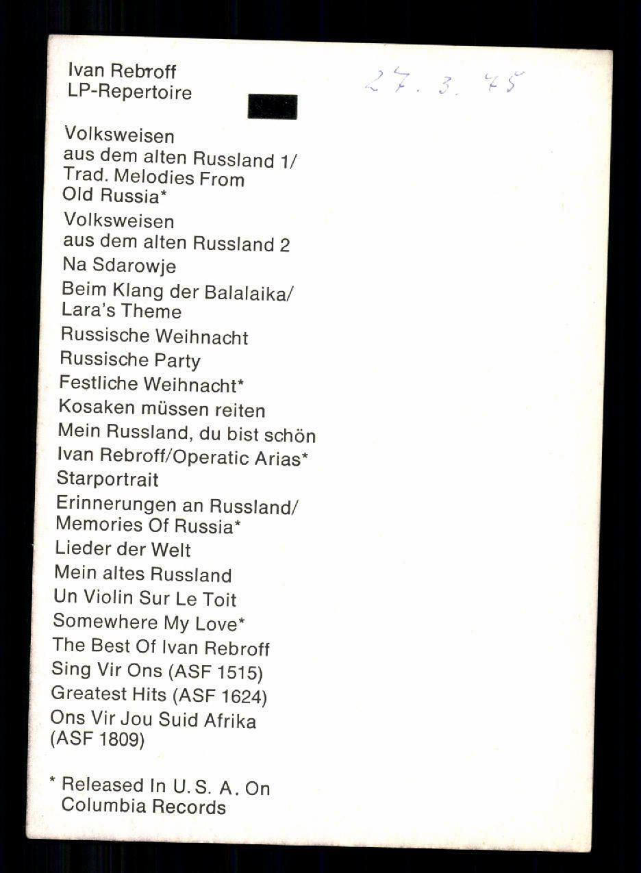Ivan Rebroff Autogrammkarte Original Signiert ## BC 157249