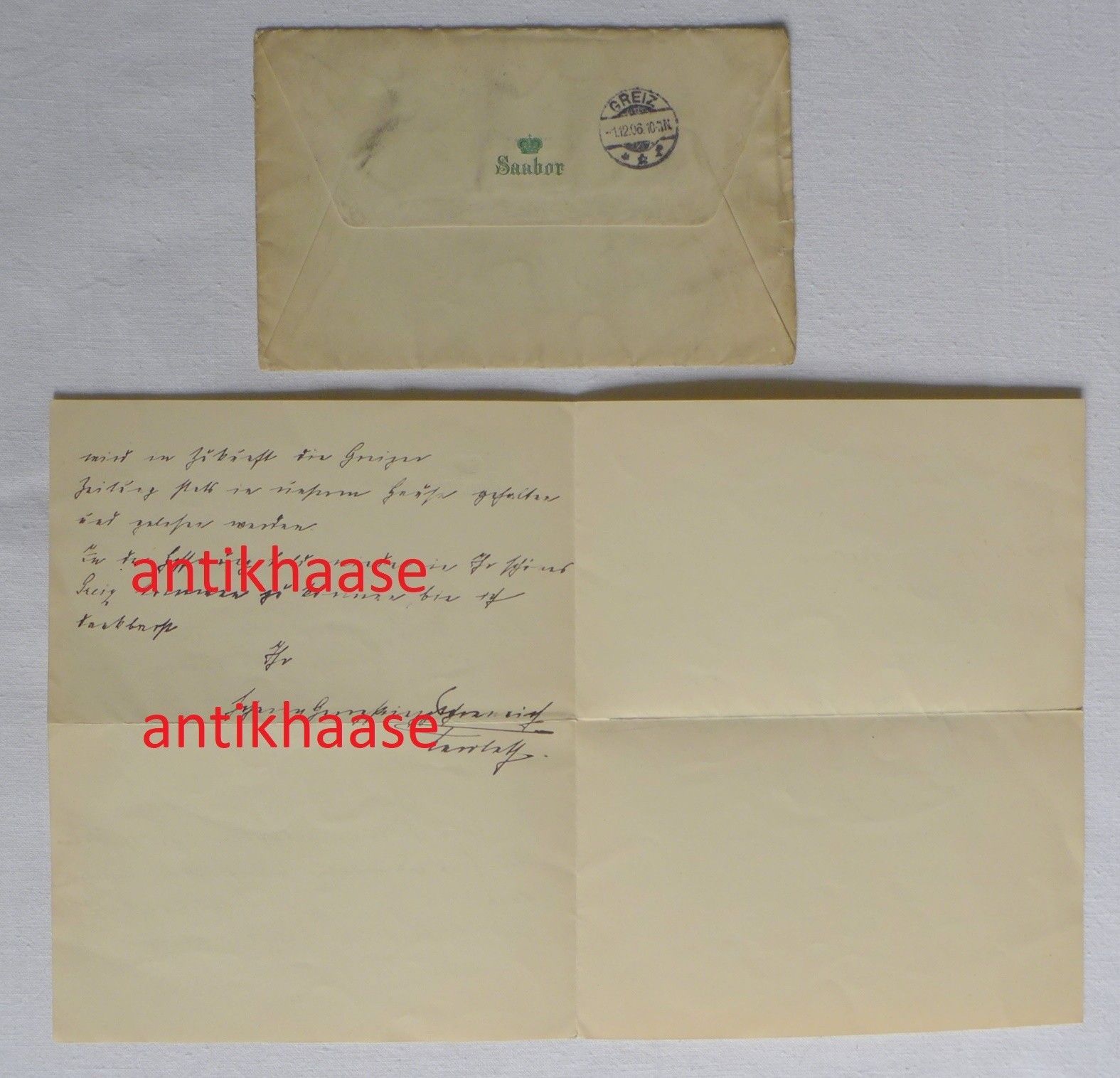 gebrauchter Zustand siehe Fotos , kleine Einrisse an den Knicken vorhanden , Umschlag etwas vergilbt angeschmutzt , Brief datiert 30.11.06 Poststempel vom 1.12.06 , An Herrn Redakteur ( Greizer Zeitung ) und Schriftsteller Franz Kellert Greiz , Kellert war ab 1895 in Schlesien redaktionell tätig und