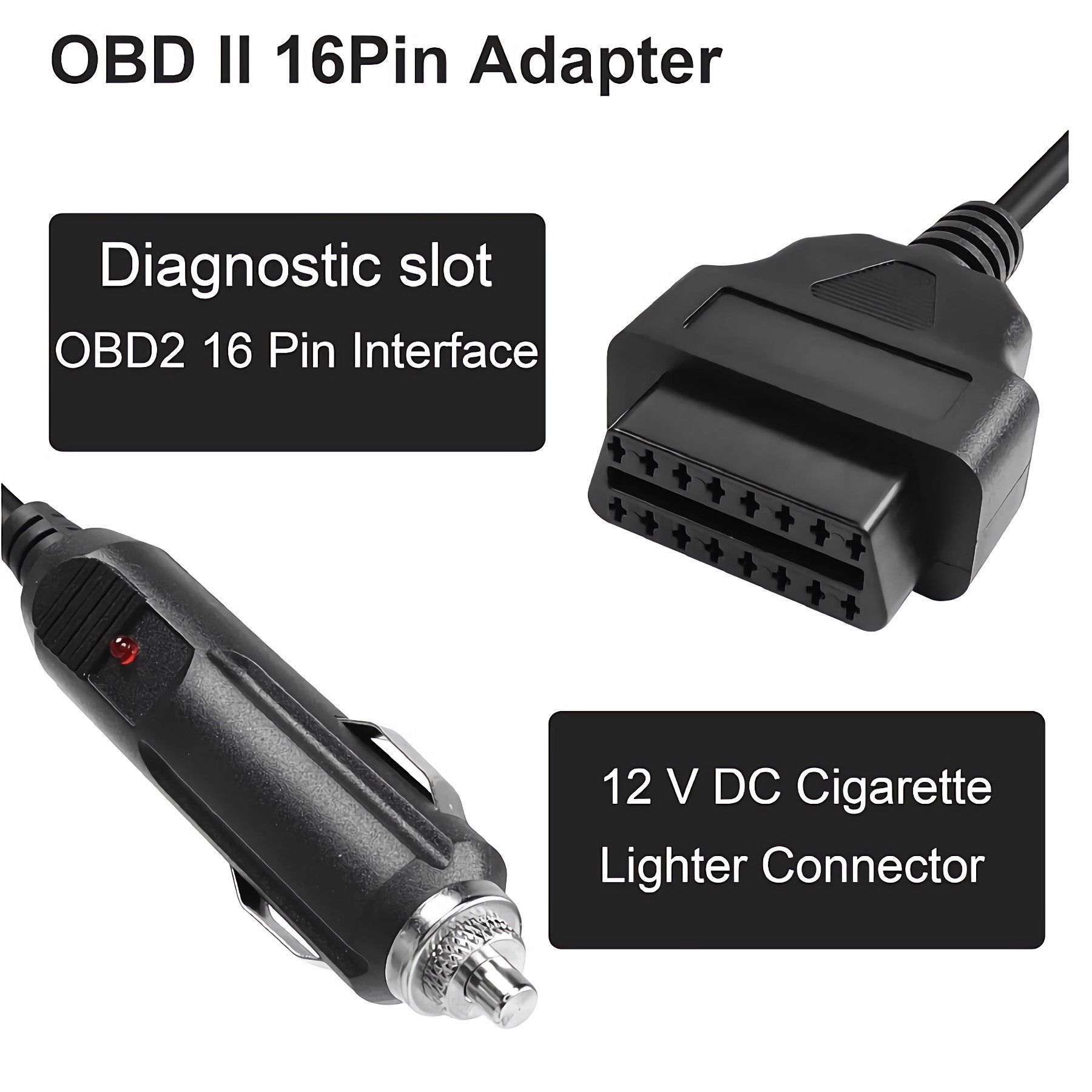 J56C OBD2 Stromversorgungskabel 16Pin auf Stabile 12V Zigarettenanzünder Adapter 1m