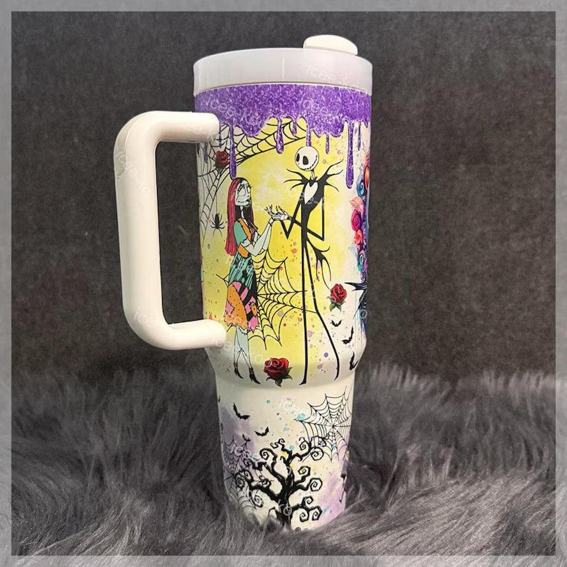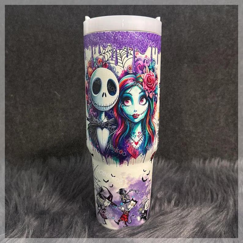 Jack and Sally Glow-in-the-Dark Tumbler | Nightmare Before Christmas Cup | Halloween