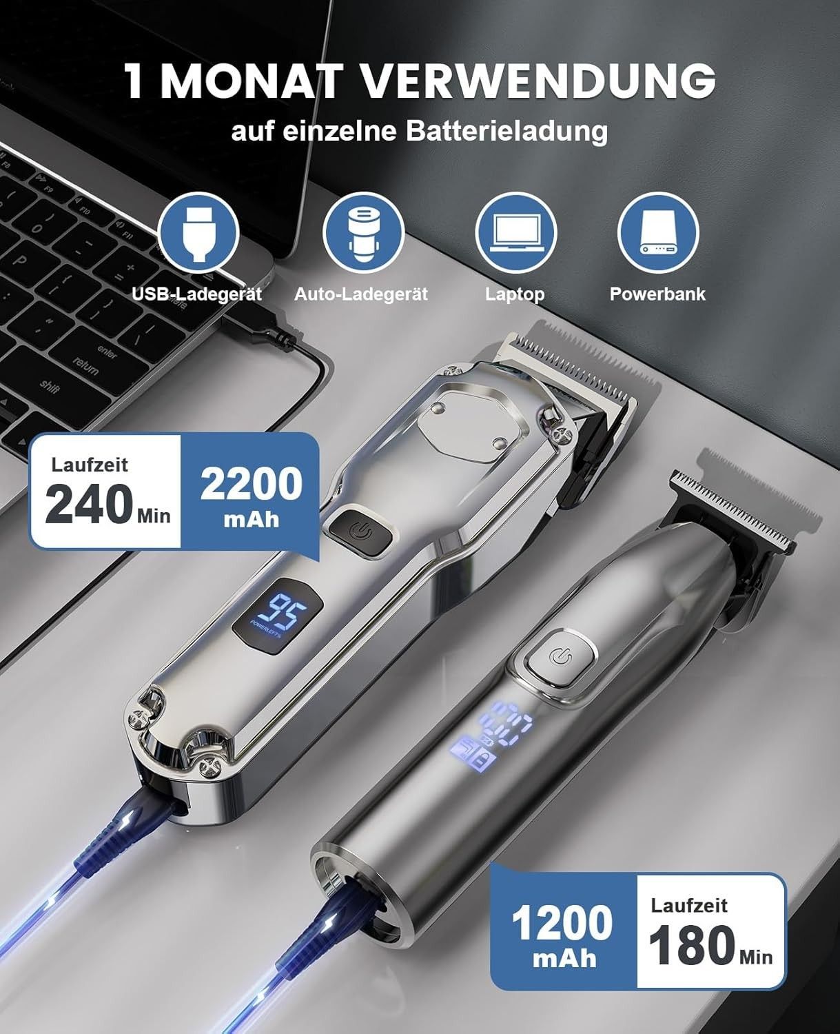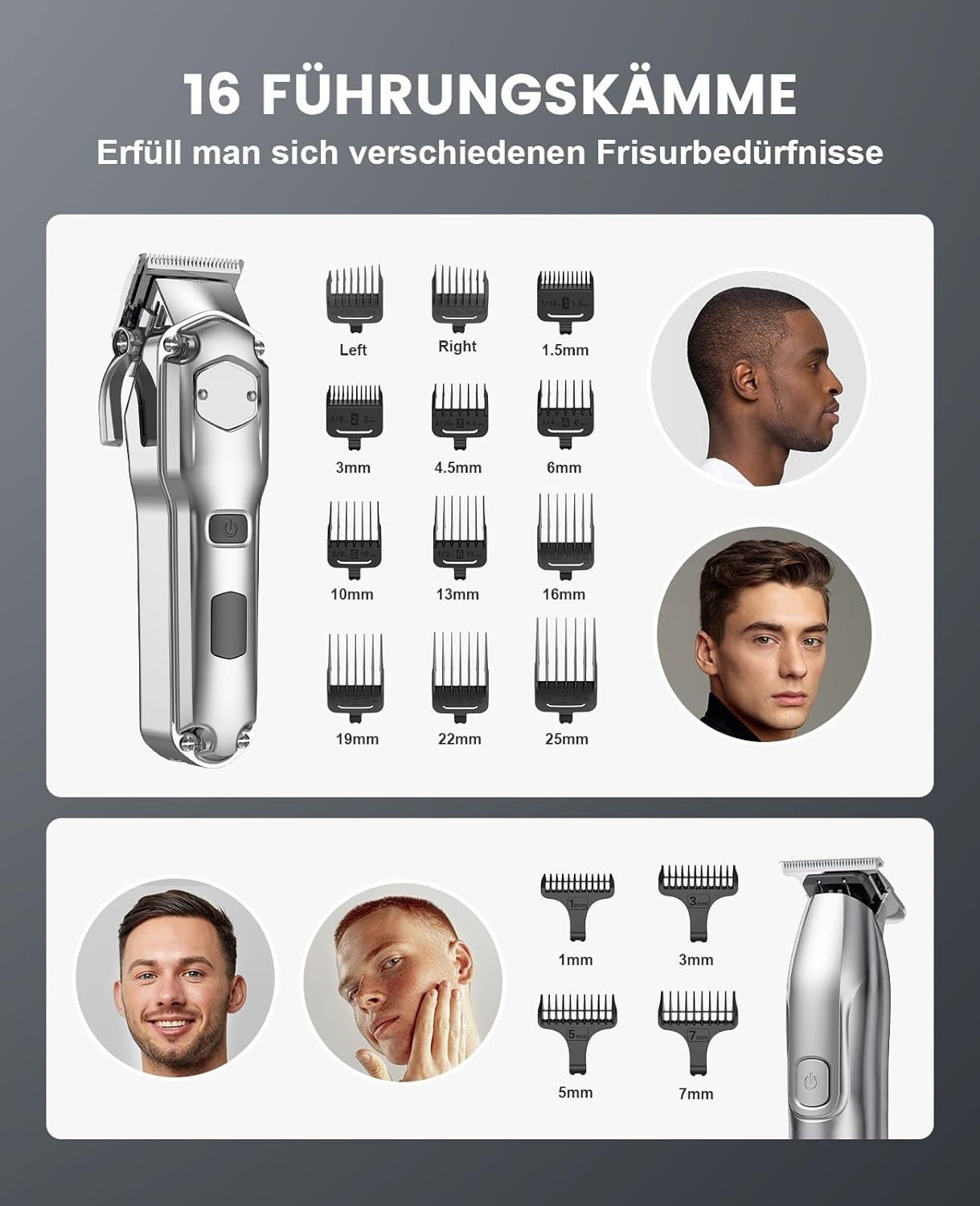 Jack & Rose Hair Clipper, Professional Hair Trimmer, Wireless & Rechargeable, IPX7 Waterproof Precision Trimmer, Beard Trimmer, Hairdresser, Razor, Care Set for Men