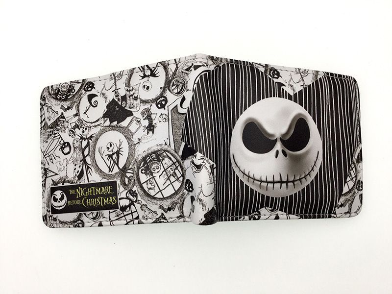 Jack Skellington Thema02 PU Brieftasche Jungen Mädchen Bifold Geldbörsen