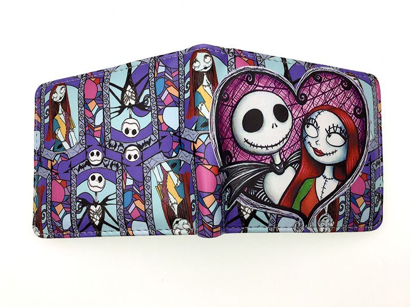 Jack Skellington Thema03 PU Brieftasche Jungen Mädchen Bifold Geldbörsen