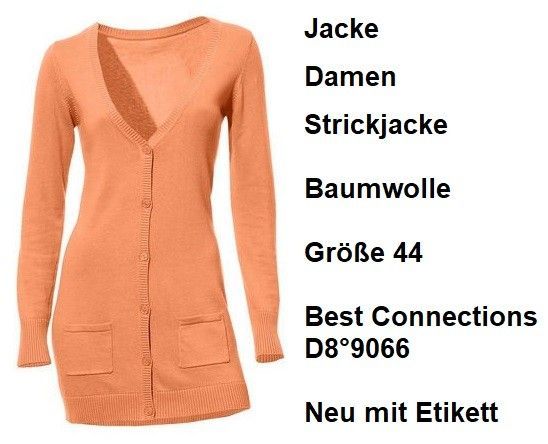 Jacke Damen Strickjacke Baumwolle Größe 44 Best Connections D8°9066. NEU mit Etikett