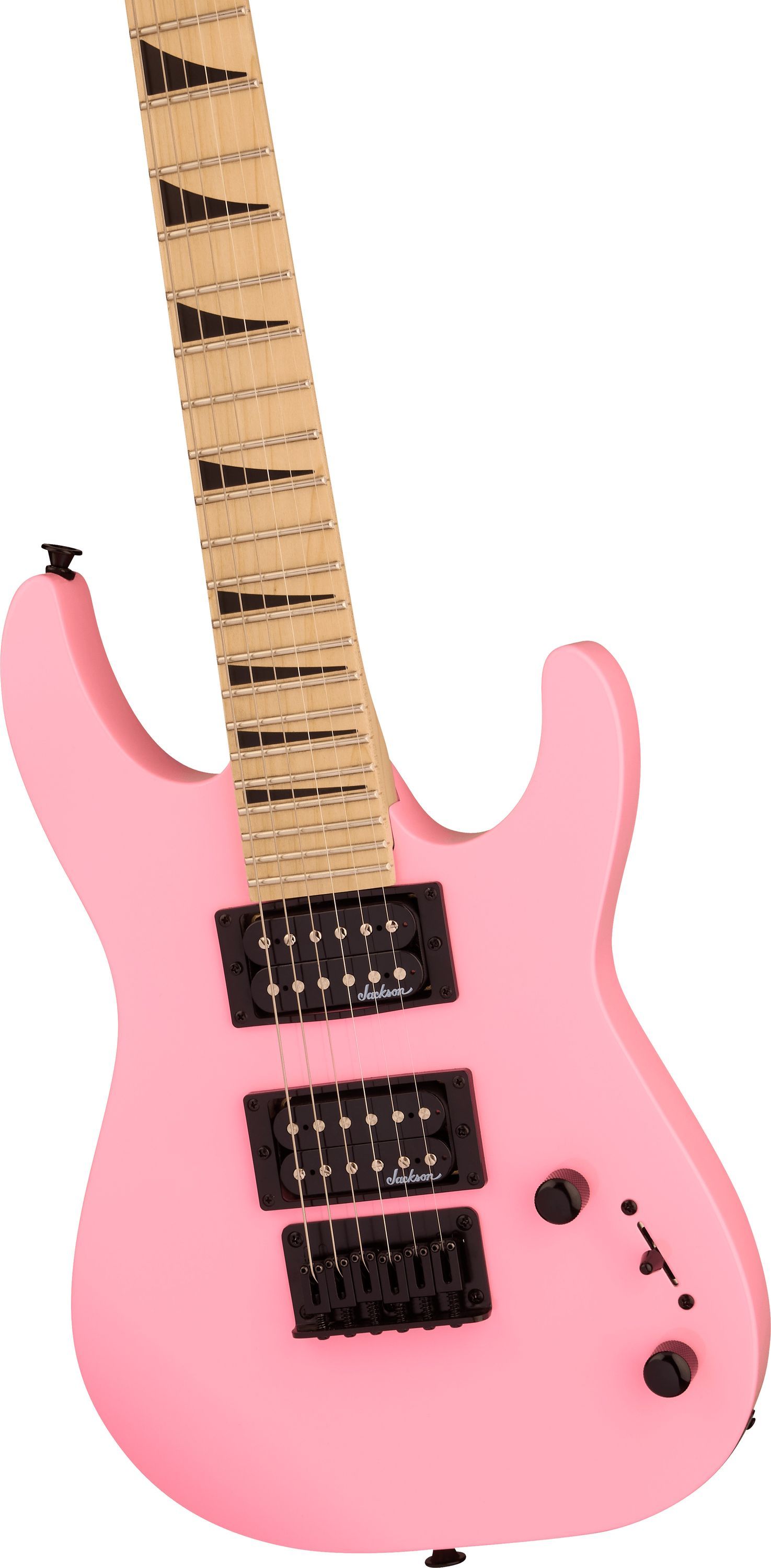 Jackson Dinky Minion JS1X, Bubblegum Pink Korpus: Pappel Hals: Ahorn Griffbrett: Amaranth Griffbrettradius: 12' Mensur: 57,2 cm (22,5') Sattelbreite: 41,3 mm Inlays: Pearloid Sharkfin 24 Jumbo Bünde Tonabnehmer Hals: Jackson High-Output Humbucking Tonabnehmer Brücke: Jackson High-Output Humbucking 3