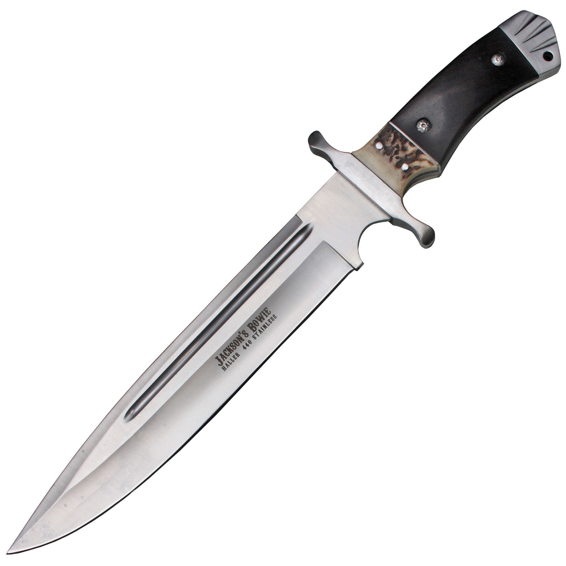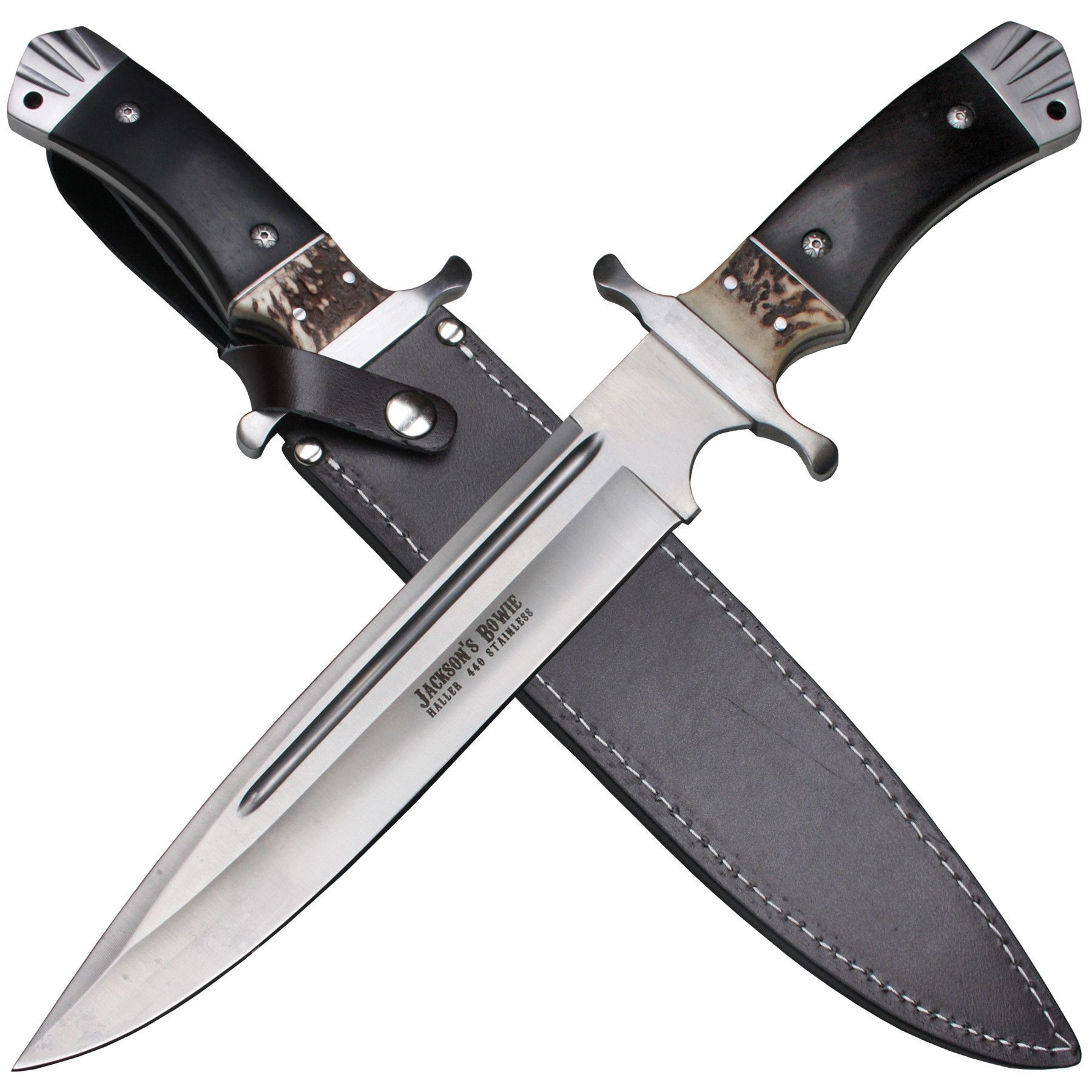 Haller Jackson´s Bowiemesser Jagdmesser Outdoormesser Pakkaholz mit Hirschhorn Lederscheide