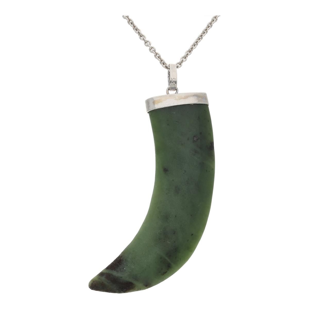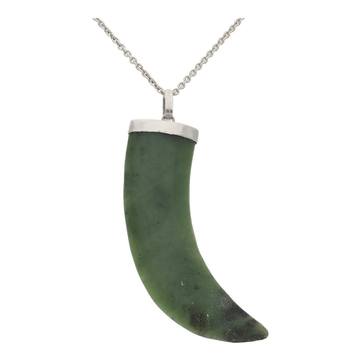 Jade Anhänger Silber Fassung Zahnform getragen Second Hand 25325343