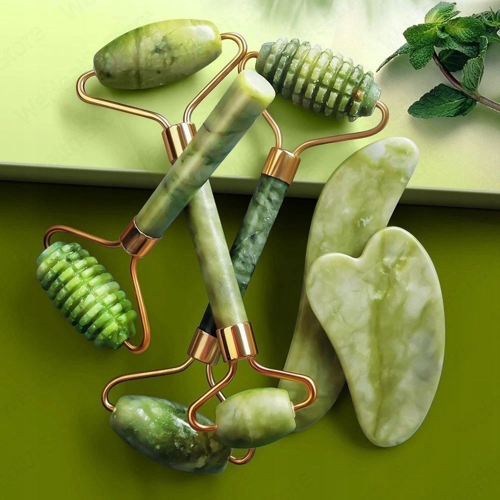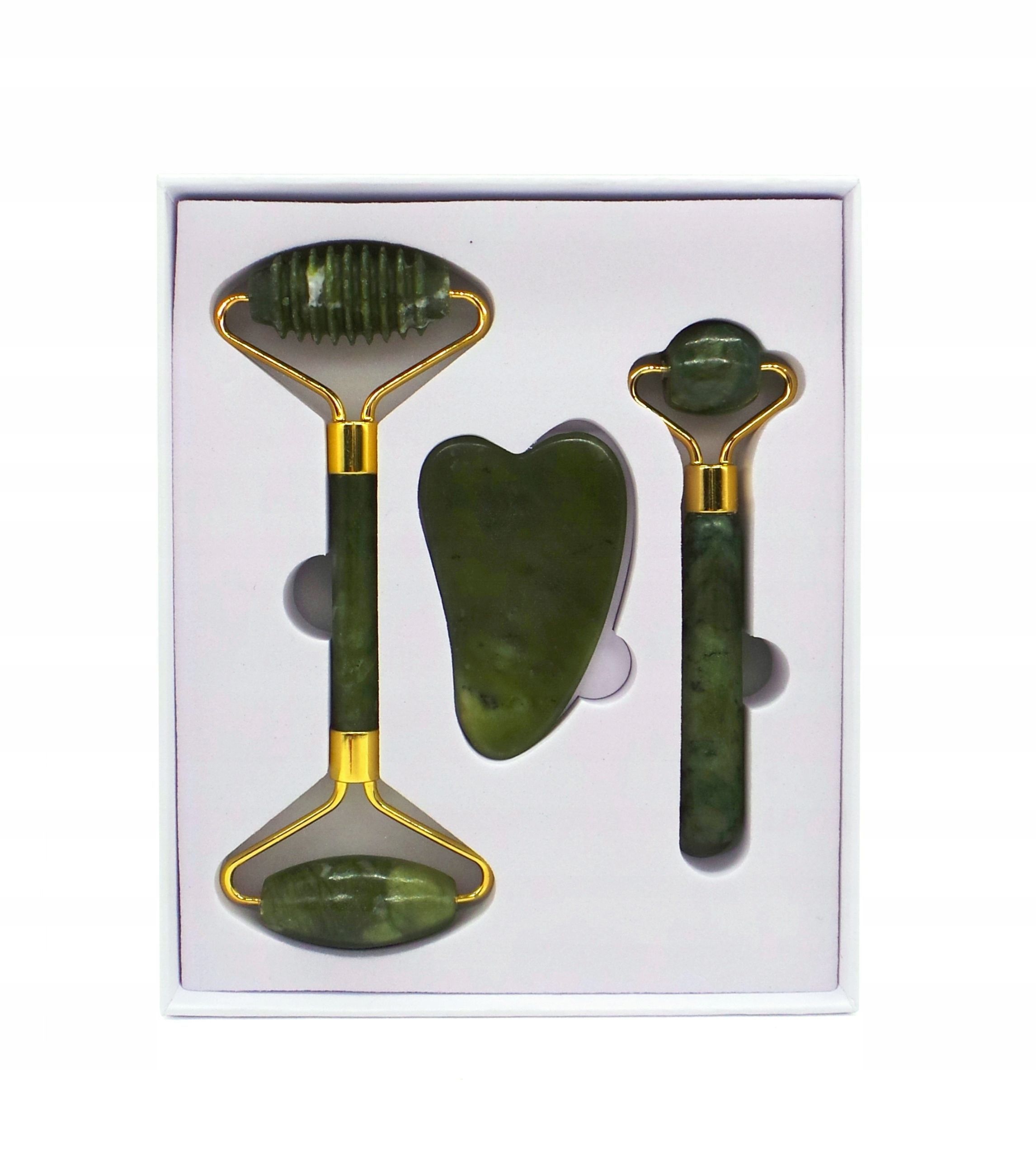Jadeite TWIN Massage SET 2x ROLLER+GUA SHA